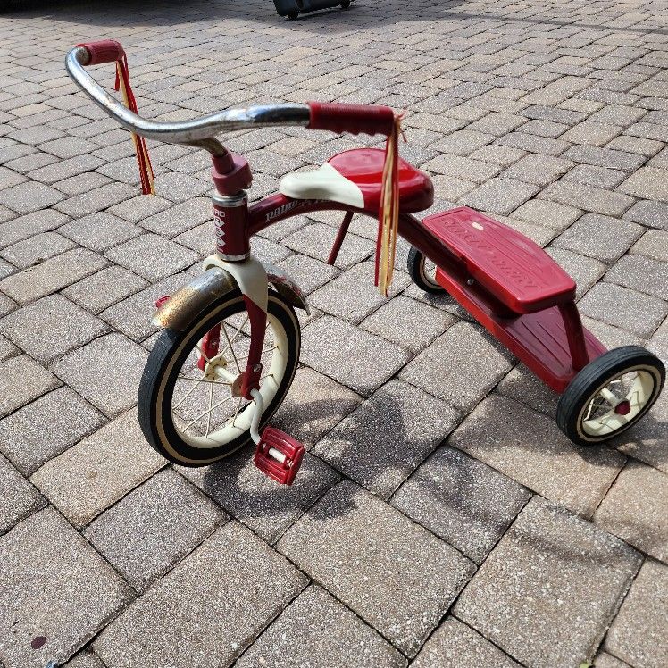 Vintage Retro Radio Flyer Red Tricycle Spoke Wheels Steel Frame Has surface rust and some dust. Works perfectly fine. Pick this up for your child or collection.