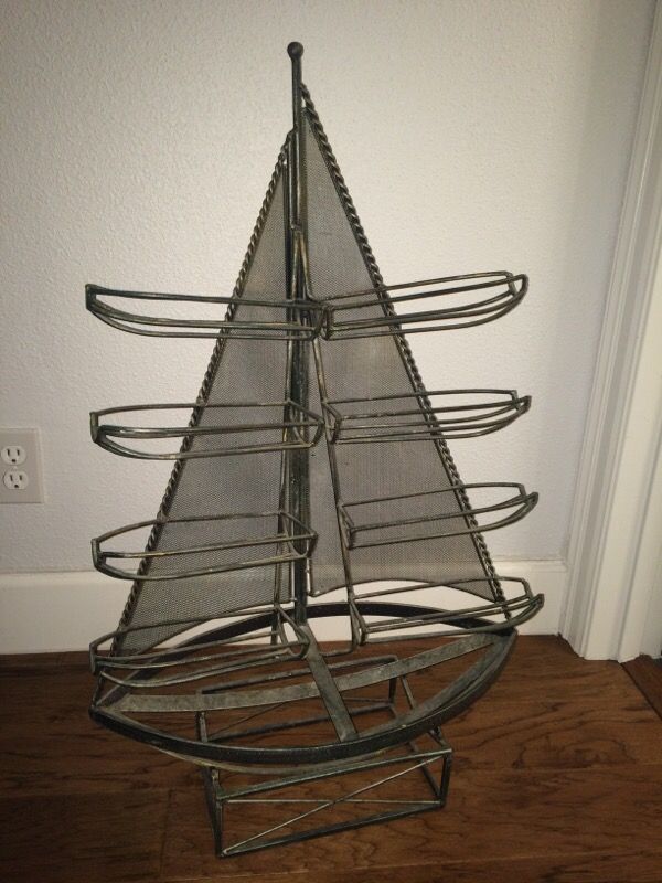 Handmade Iron sailboat wine rack
