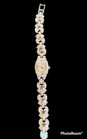 Vintage PIERRE NICOL Ladies Fashion Marcasite Bracelet Watch QUARTZ Japan Mvmt pre-owned NEEDS BATTERY asking $30 Firm pick ups only No delivery No holds all sales are final
