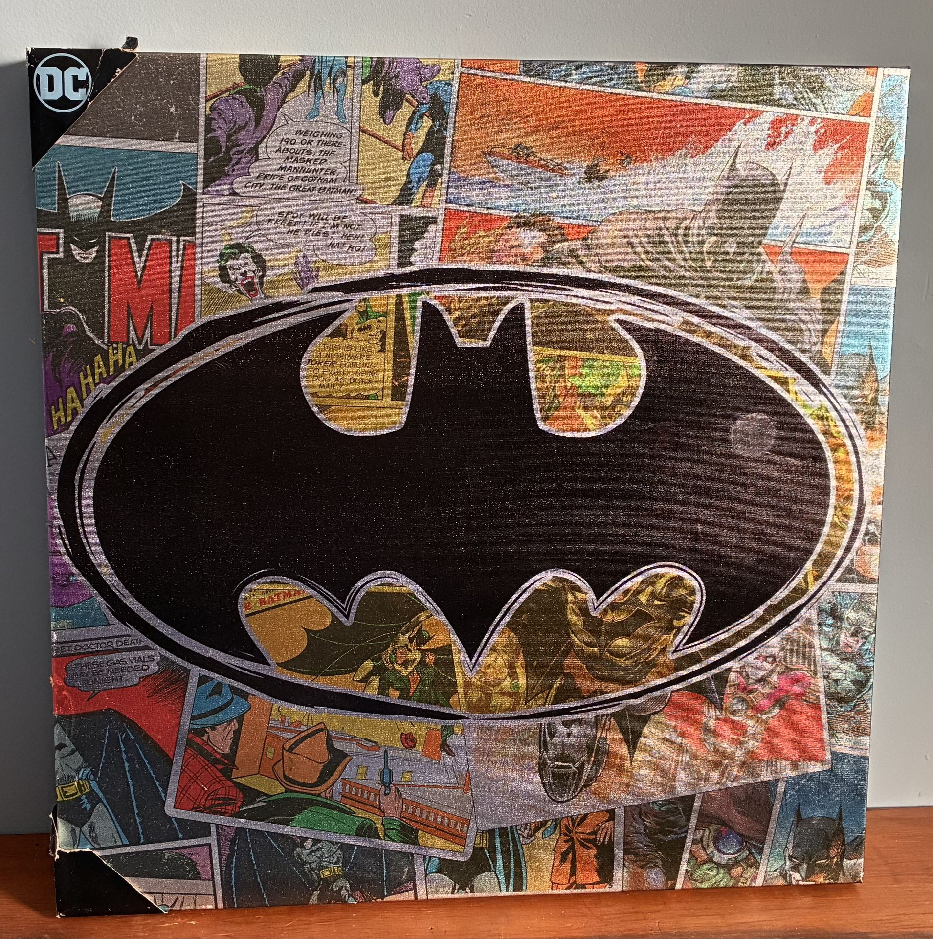 Batman canvas wall art Never used but has a spot on it from storage. Measurements: 25” x 25”
