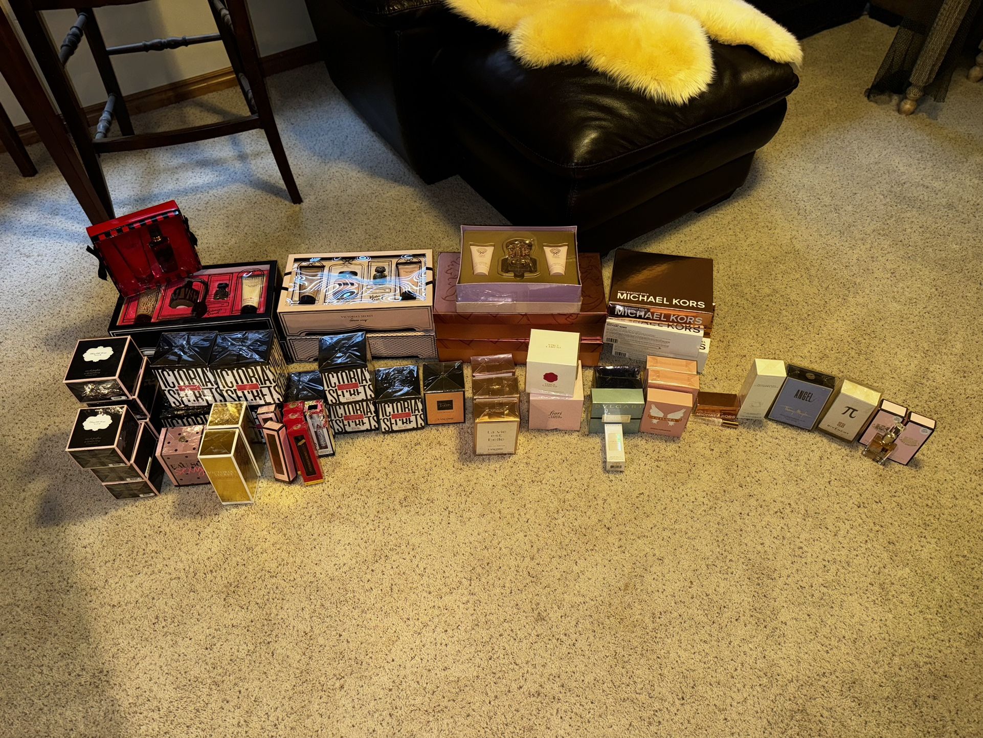 Brand New Various designer brand perfumes for sale. Prices vary. Sets: * Vince Camuto Fiori (2) - $35/each * Vince Camuto Fiori (Lotion & Shower gel) - $35 * Michael Kors Rose Radiant Gold - $40 * Michael Kors Glam Jasmine - $40 * Michael Kors Sporty Citrus - 40 * Victoria’s Secret Very Sexy (w/Lotion) - $20 * Forever Sexy (Lotion/Shower Gel) - $40 * Tease (Lotion/Body Wash) - $40 * Love Me (Lotion/Body Wash) (2) - $40/each Individuals: * Victoria’s Secret: * Sexy Little Things Noir 3.4oz (4) - $150/each * Sexy Little Things Noir 1.7oz (3) - $120/each * Love Me 3.4oz (5) - $40/each * Love Me 1.7oz (3) - $20/each * Eau So Sexy - $20 * Heavenly (2) - $30/each * Tease 0.23oz (2) - $10/each * Very Sexy 0.23oz (3) - $10/each * XO, Victoria 0.23oz - $10 * Lancôme: * Tresor 3.4oz - $40 * La Vie Est Belle 3.4oz - $40 * La Vie Est Belle 2.5oz - $30 * La Vie Est Belle 1.7oz - $20 * Vince Camuto: * Fiori 3.4oz - $40 * Vince Camuto 1.7oz - $20 * BVLGARI: * Omnia 0.34oz - $40 * BLV Notte 2.5oz - $20 * BLV II 0.84oz - $20 * OLYMPEA: * Paco Rabanne 2.7oz (2) - $40/each * Paco Rabanne 1.7oz - $20 * Givenchy Paris: * 1.7oz - $20 * Thierry Mugler: * Angel 0.8oz - $20 * DonnaKaran: * Cashmere Mist 1.7oz - $20 * Michael Kors: * Rose Gold Radiant 1.0oz - $40 * Juicy Couture: * 1.0oz (2) - $20/each