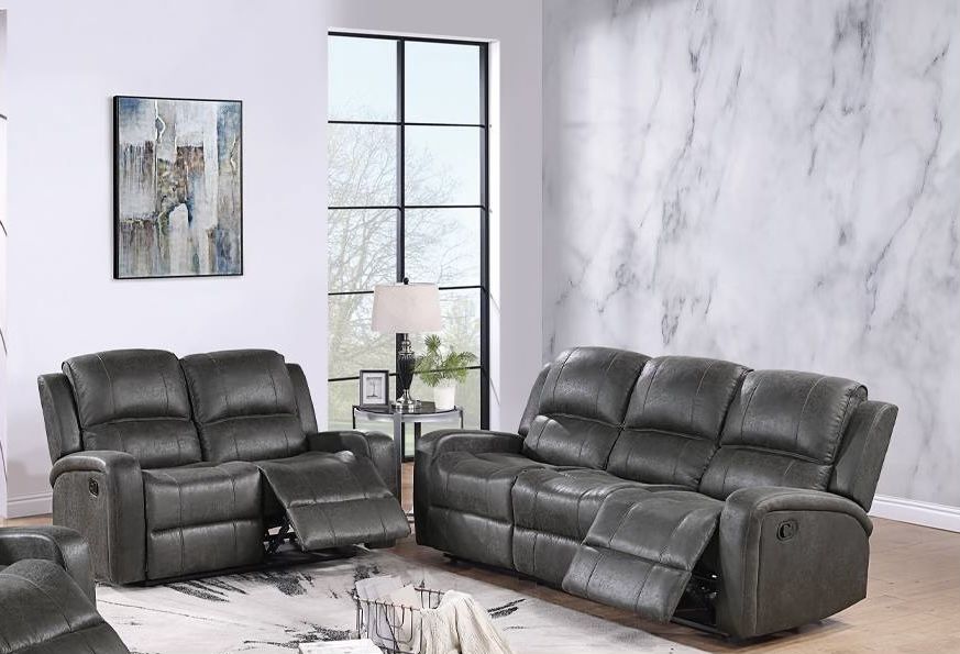 Brand New Plush Charcoal Grey Recliner Sofa Loveseat Set