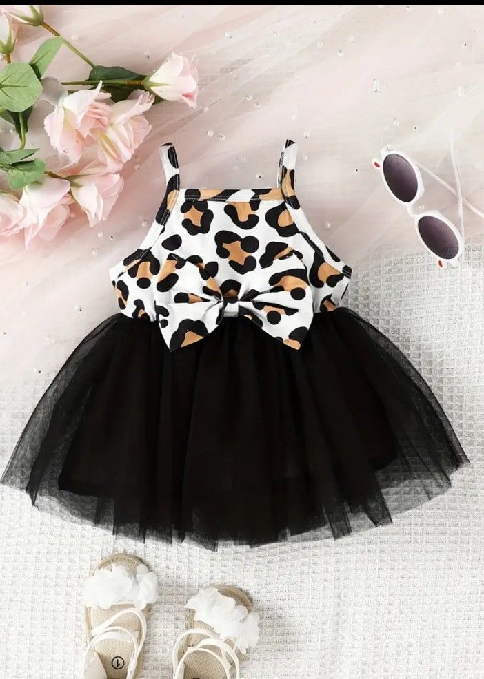 Size : 12 M Girls Casual Leopard Graphic Print Thin Strap Mesh Dress Clothes