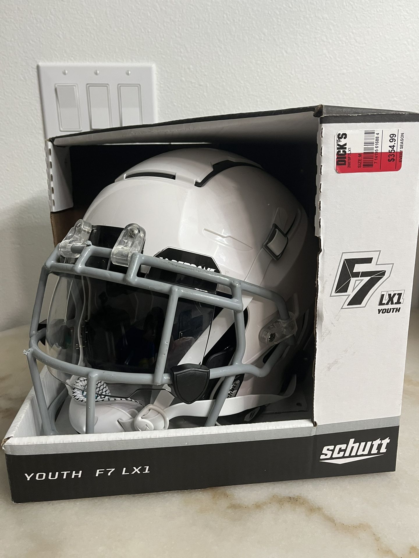 F7 football helmet, Im selling for 230$ because I have cam locs from a speed flex that were 15$ and the chin strap was 30$ and I also have a visor on it that was 20$