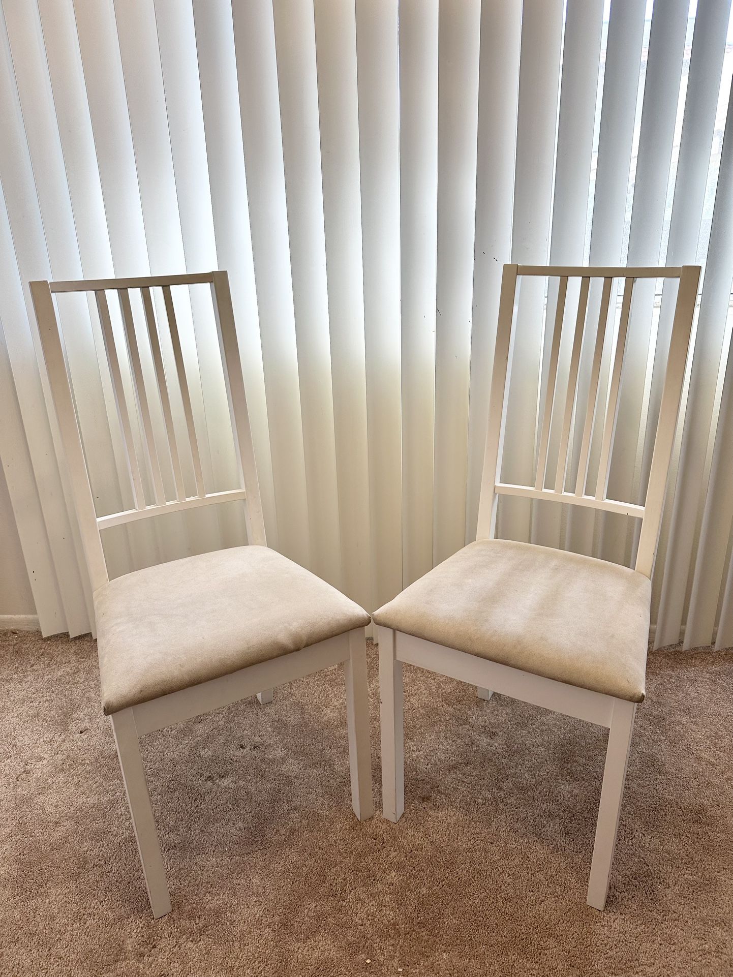 White Wood Chairs with Suede Seat Cushions