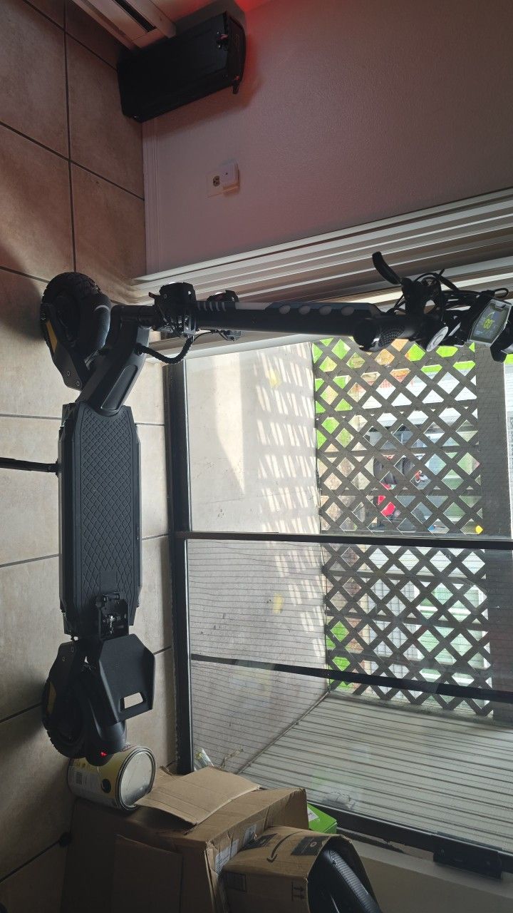 Dual brushless motors 30-40mile range on max charge Headlights, brake lights, turn signals, and Bluetooth speaker built in. Has only 1 mile on it from test riding around parking lot.