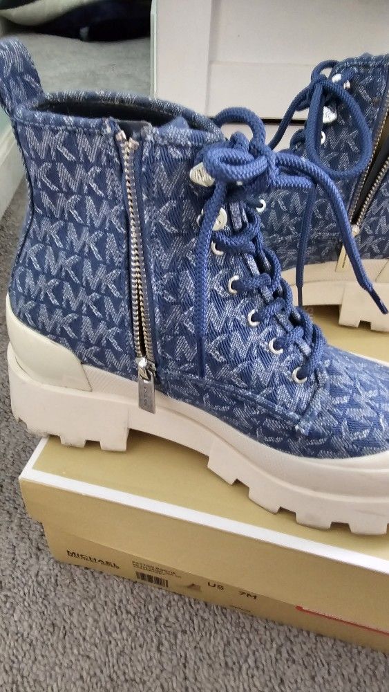 Denim colored michael kors combat boots size 7. I only wore them once. Little dirt on the soles otherwise perfect condition