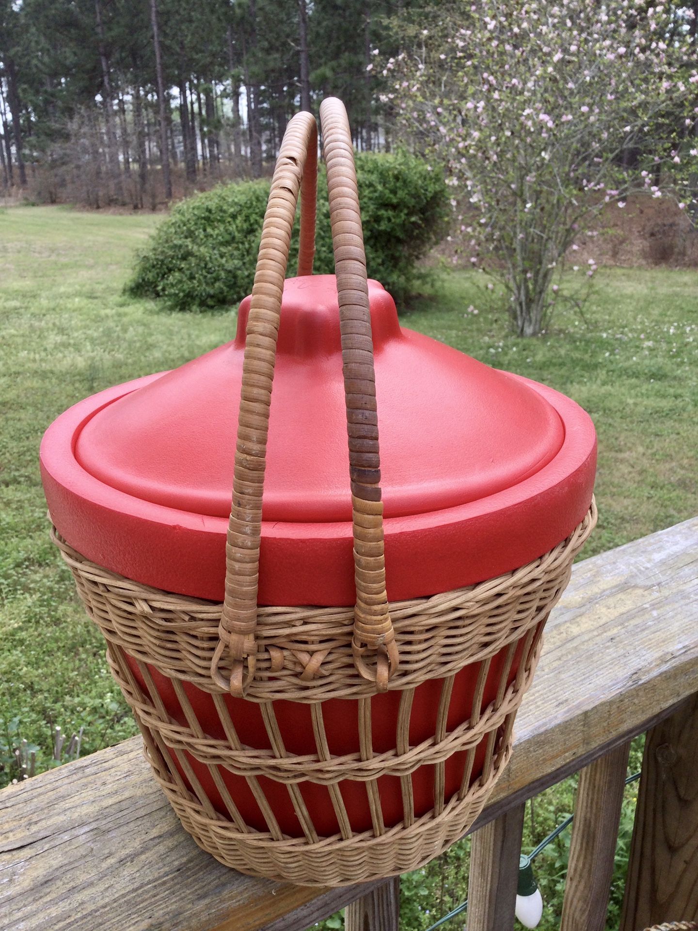 Perfect mid century modern (1950) picnic basket or ice bucket. Made of futuristic SpongeX material ( a squishy foam), by B F Goodrich. Bright red color. Can be used to carry hot or cold items. Excellent condition. Minimal wear. Cash only. PPU in Fuquay Varina. Thanks.
