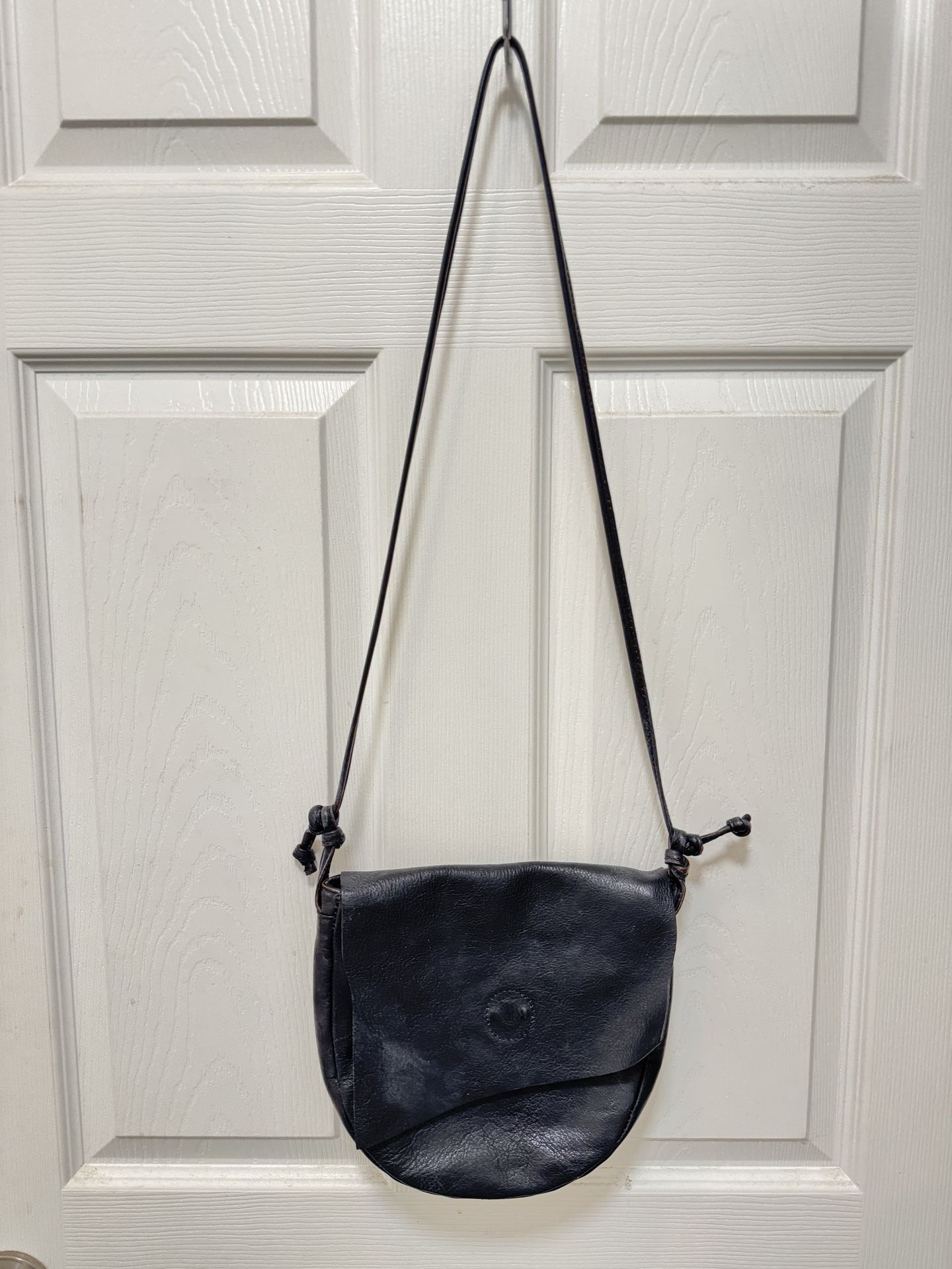Vintage Black Calf Leather Crossbody Purse, Asymmetric Flap