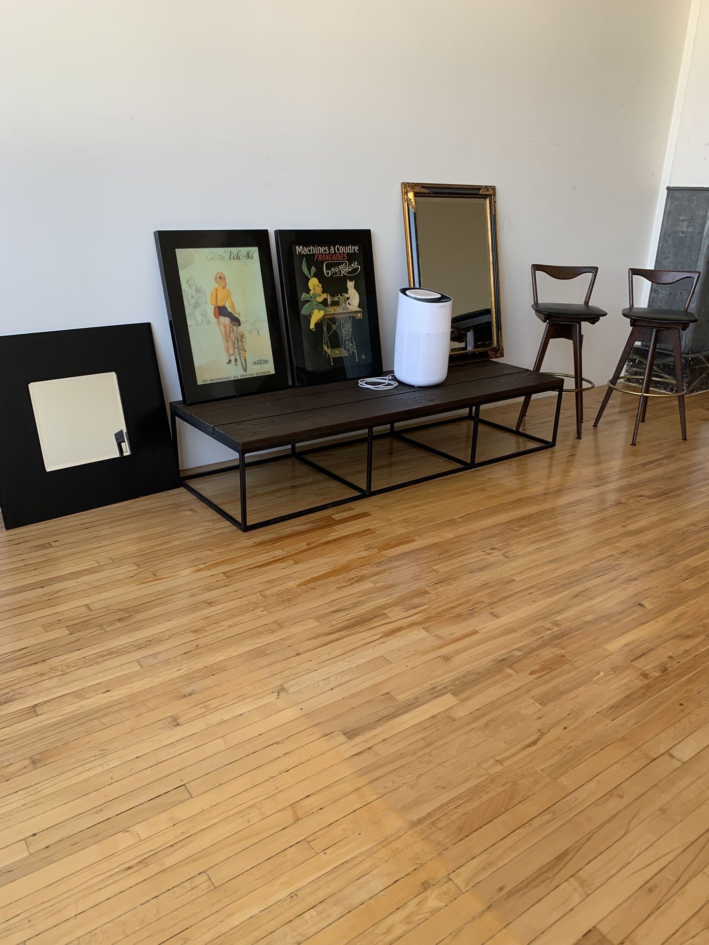 Estate Sale in Arts District DTLA. Feel free to message for address to come by and take a look. We are updating items as we go. High end quality furniture, home decor, and more. - Pair of Mid-Century Bar Stools - $500 obo - Rare Oversized Coffee Table / Bench - Industrial Wood and Metal - $2000 obo - Modern Black Framed Mirror - 32”x32” - $50 SOLD - Vintage French Art Prints - Professionally Framed on Wood Mounts - $150 - SOLD - Gunnar Erman Original Painting – Large Framed Artwork - $350