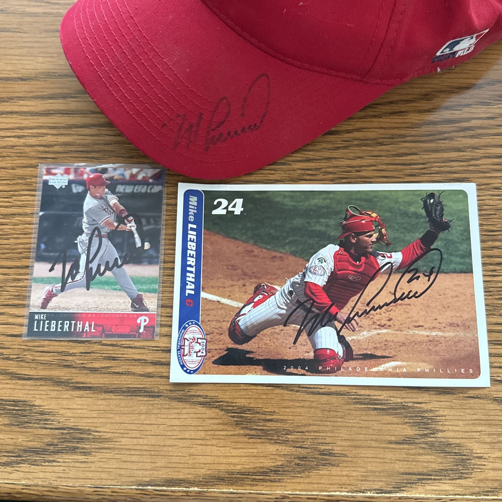 Signed Mike Lieberthal Card & Hat
