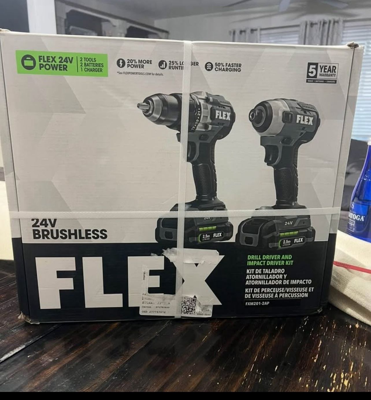 Flex 24V, Cordless.5 in Drill Driver, 2.5 Ah, 2 Pieces $130 BRAND NEW PRICE IS VERY FIRM