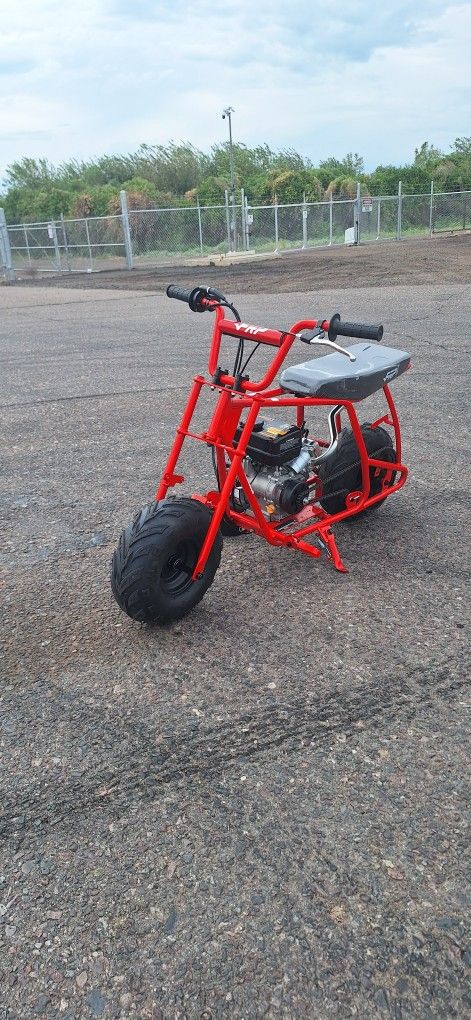 Top speed: 45mph Mile range is 30 miles on a full tank of gas I've only had it for 2 weeks still in perfect condition and runs well no problems New carburetor, new tires, and new exhaust, new throttle handle and cable
