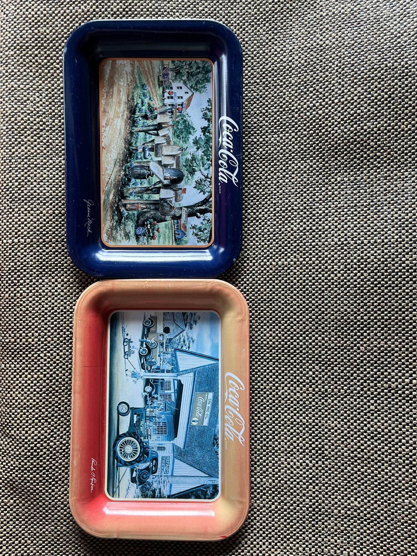 Vintage mini metal Coca-Cola serving tray great condition minor fading on red Trey
