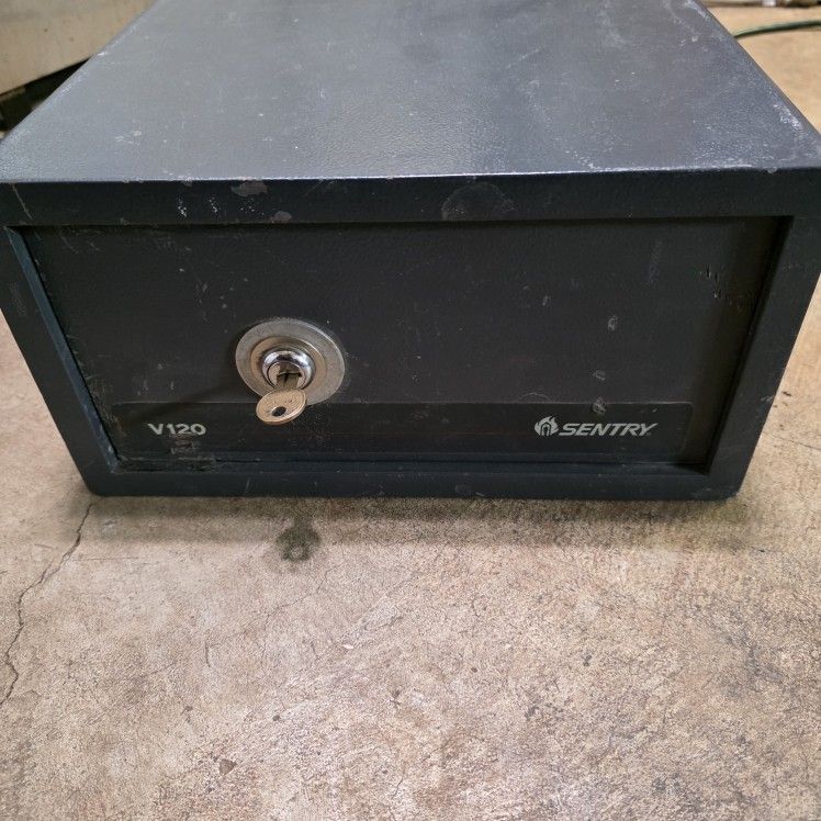 Selling a SentrySafe V120 small steel security safe in good working condition. Perfect for securing handguns, important documents, jewelry, or cash. Features: Solid Steel Construction this thing is heavy for the size. Durable and tamper-resistant. Concealed hinges for added pry-resistance. Pre-drilled holes in the bottom to bolt it to the floor or a shelf for extra security. SCompact enough for a closet or under a bed (Approx. 12" W x 11" D x 6" H)