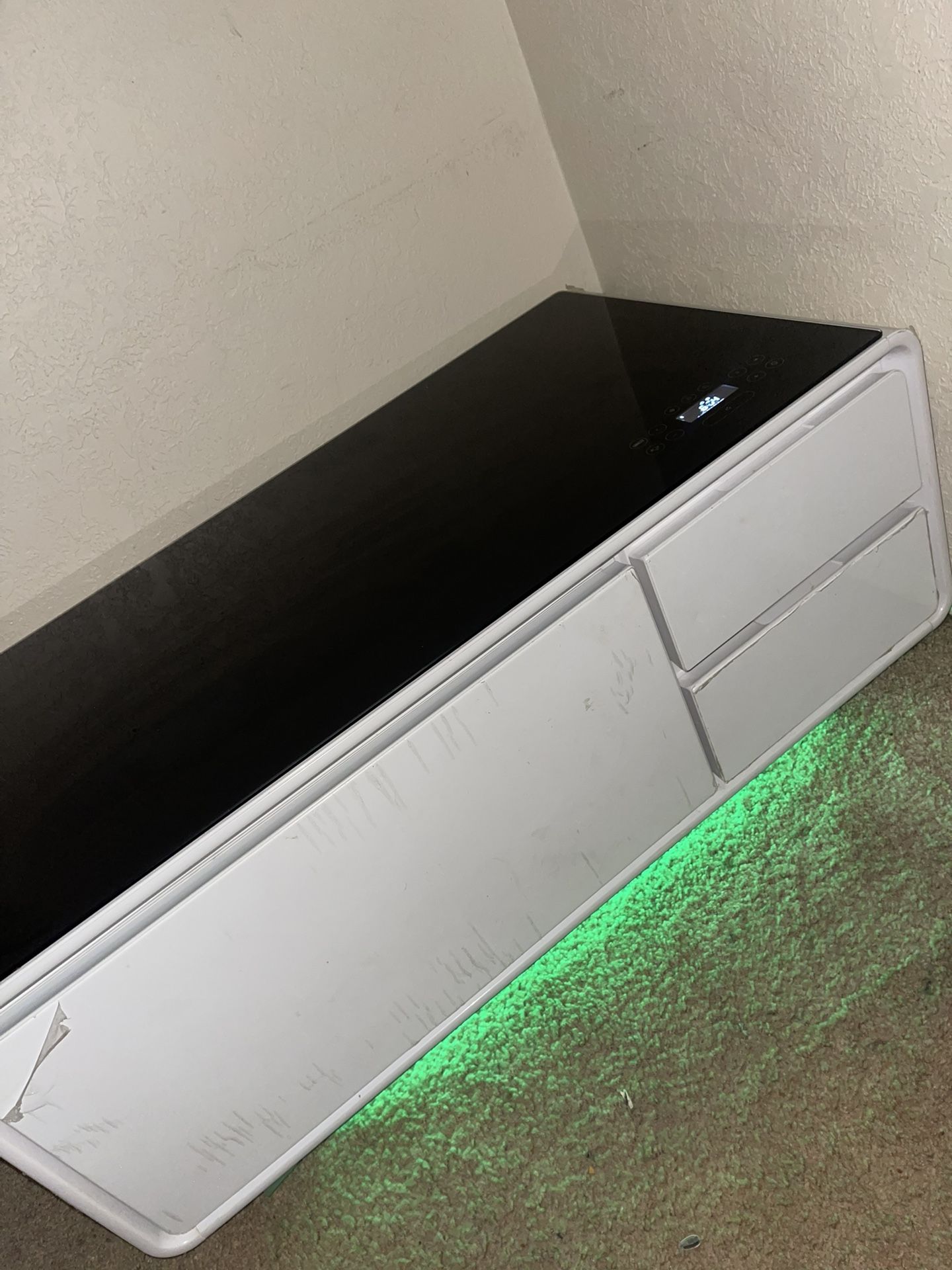 a smart coffee table design . Bluetooth speakers on each side. LED lights on the under Coffee Table , 2 USB charging ports and 4 outlets so you’re never out of the loop. connect your TV/phone via the included Bluetooth and control all these features via the touchscreen on the tempered glass top. The Sobro keeps beverages and food chilled and always within reach: the Sobro uses a compressor to keep your wine, beer and beverages ice cold, and features precise temperature controls that you can adjust to your personal liking