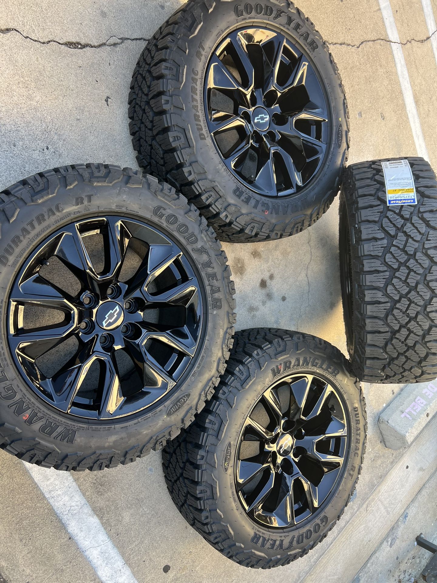Rines y llantas nuevas para Chevy silverado 20” Originales de factoría OEM Llantas nuevas Goodyear wrangler Duratrac LT275/60/20 100% limpios nuevos gloss black powder coated $1799 Gente seria por favor gracias New Chevy silverado Rims and tires 20” Original Oem factory wheels New Goodyear wrangler Duratrac tires LT 275/60r20 100% clean new gloss black powder coated $1799 Serious buyers only Thank you Chevy silverado rines Chevy tahoe wheels Chevy suburban rims Fits all Chevy GMC trucks Stock rims Stock wheels Fits Silverado Tahoe Z71 RST Avalanche Suburban GMC Sierra Yukon