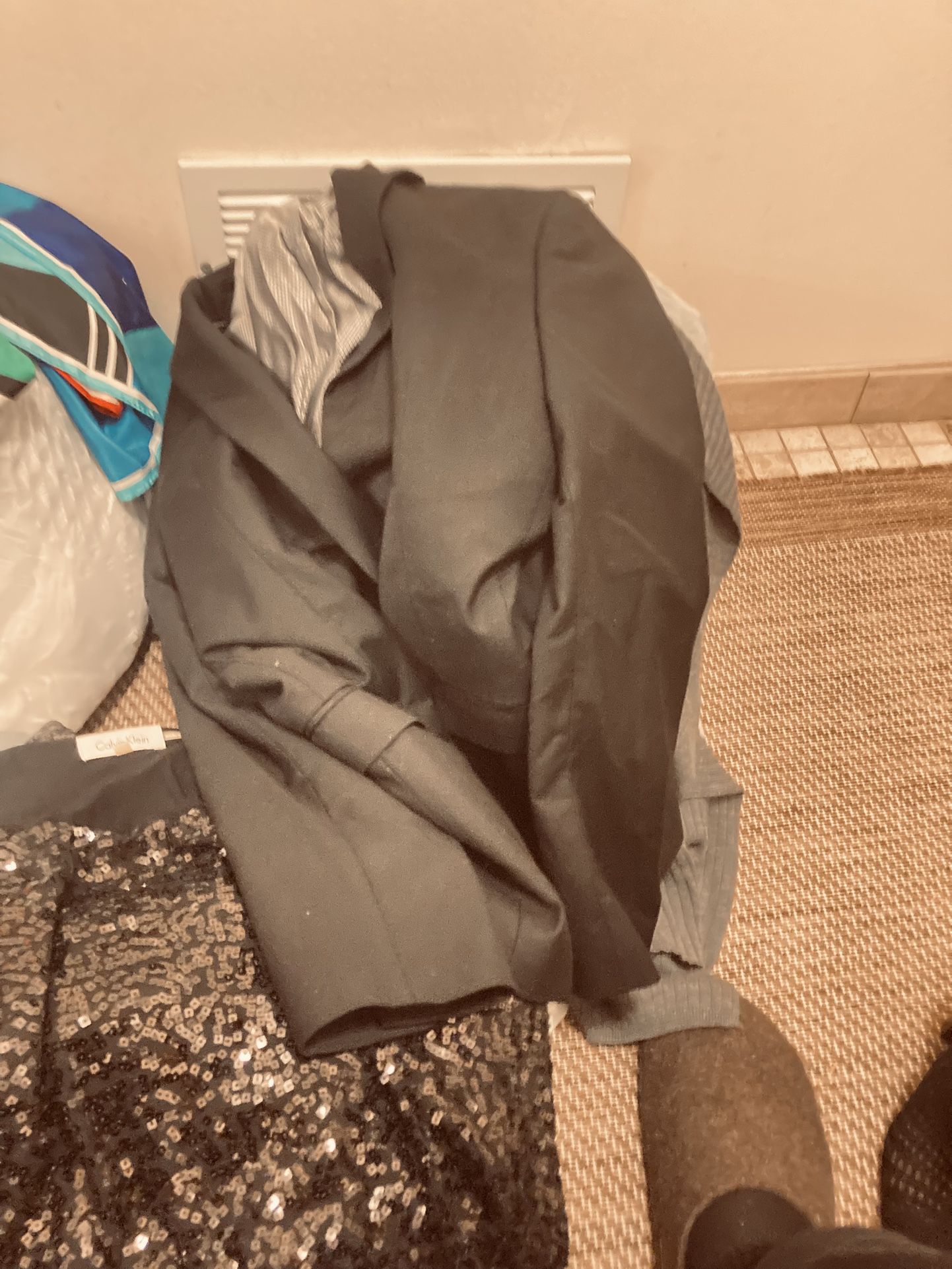 Few are small, medium, a few large hoodies T-shirts tank tops 42 men’s coat size 7 women’s shoes and necklace party dress by Calvin Klein. It’s a medium silk scarf. Pick up 20 and greenfield. Name your price to much to list. I’m feeling generous, they free if you need them.