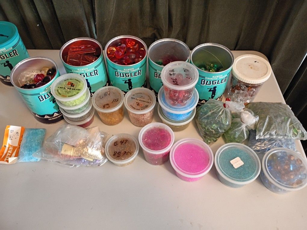 Vintage Craft Lot Crushed Glass Marbles And Resin Pieces