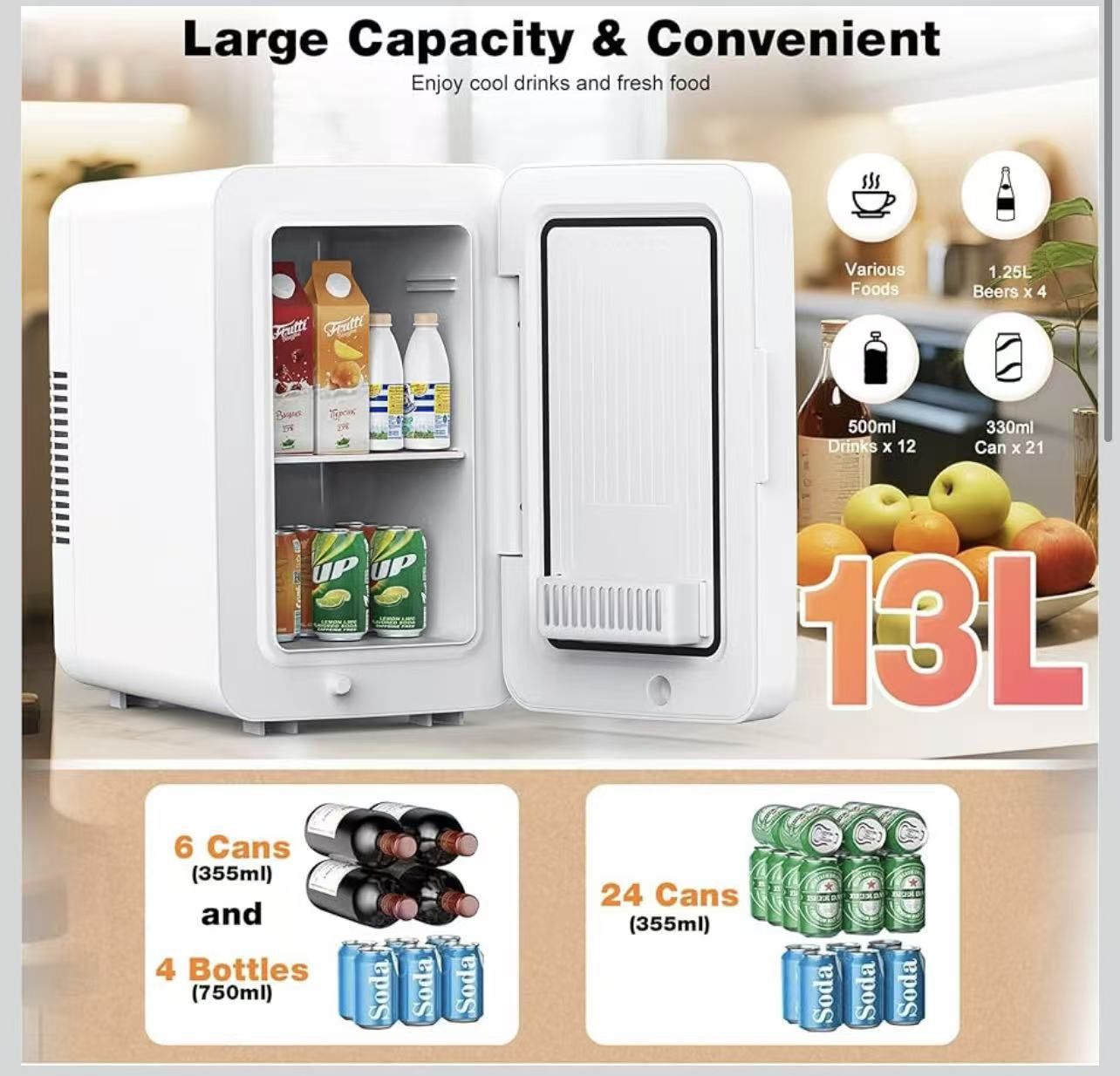 🥨13L Mini Fridge for Bedroom, Non-condensing Small Skincare Fridge, 110V/12V Portable Refrigerator Cooler & Warmer for Drinks, Food, Beauty, Makeup,