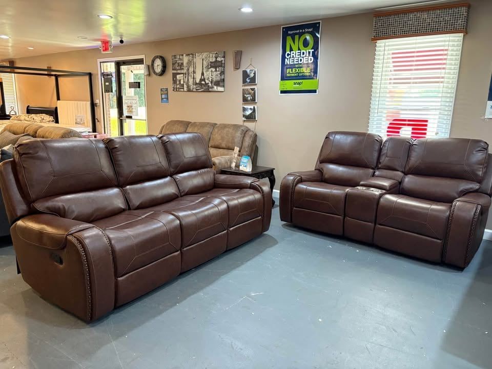 New 2pc Reclining Sofa & Loveseat Set