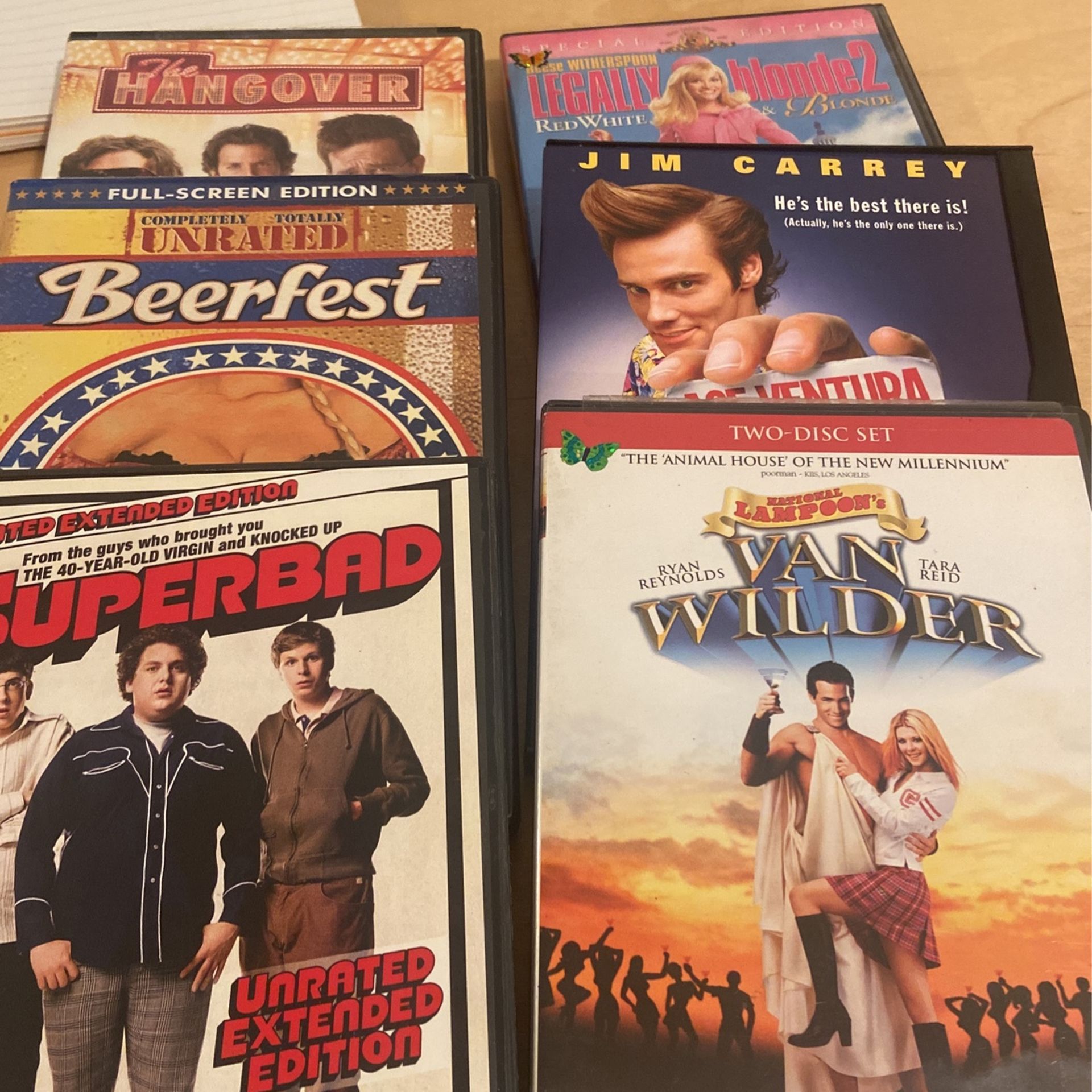 In this lot there is Superbad,van wilder,ace Ventura,legally blonde 2?beerfest,the hangover