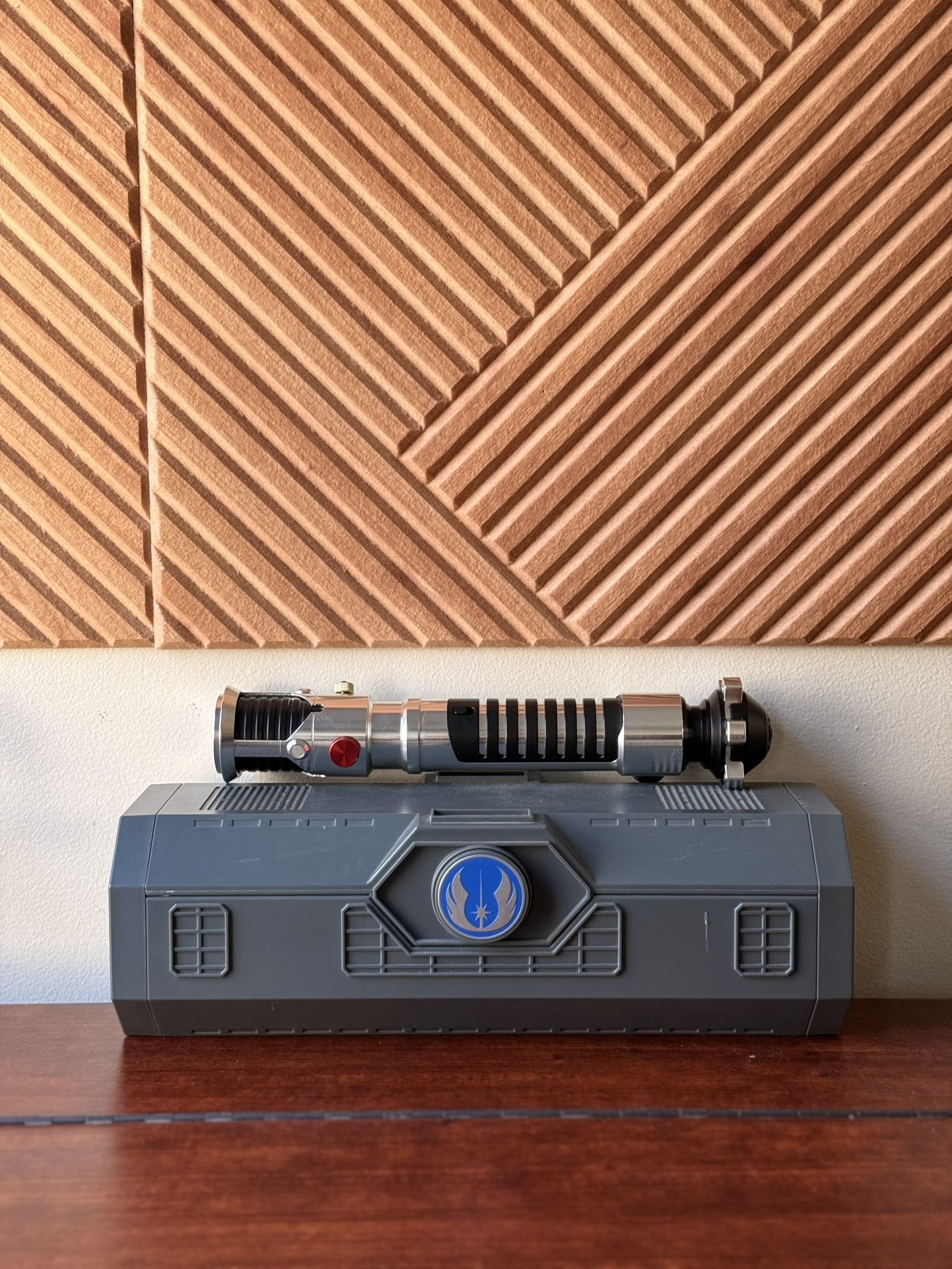 Star Wars lightsaber in excellent condition. Comes with the display/storage case shown. Clean, well kept, great for collectors or display. No blade included. Straight from Galaxy Edge. Batteries in there. Priced to sell.