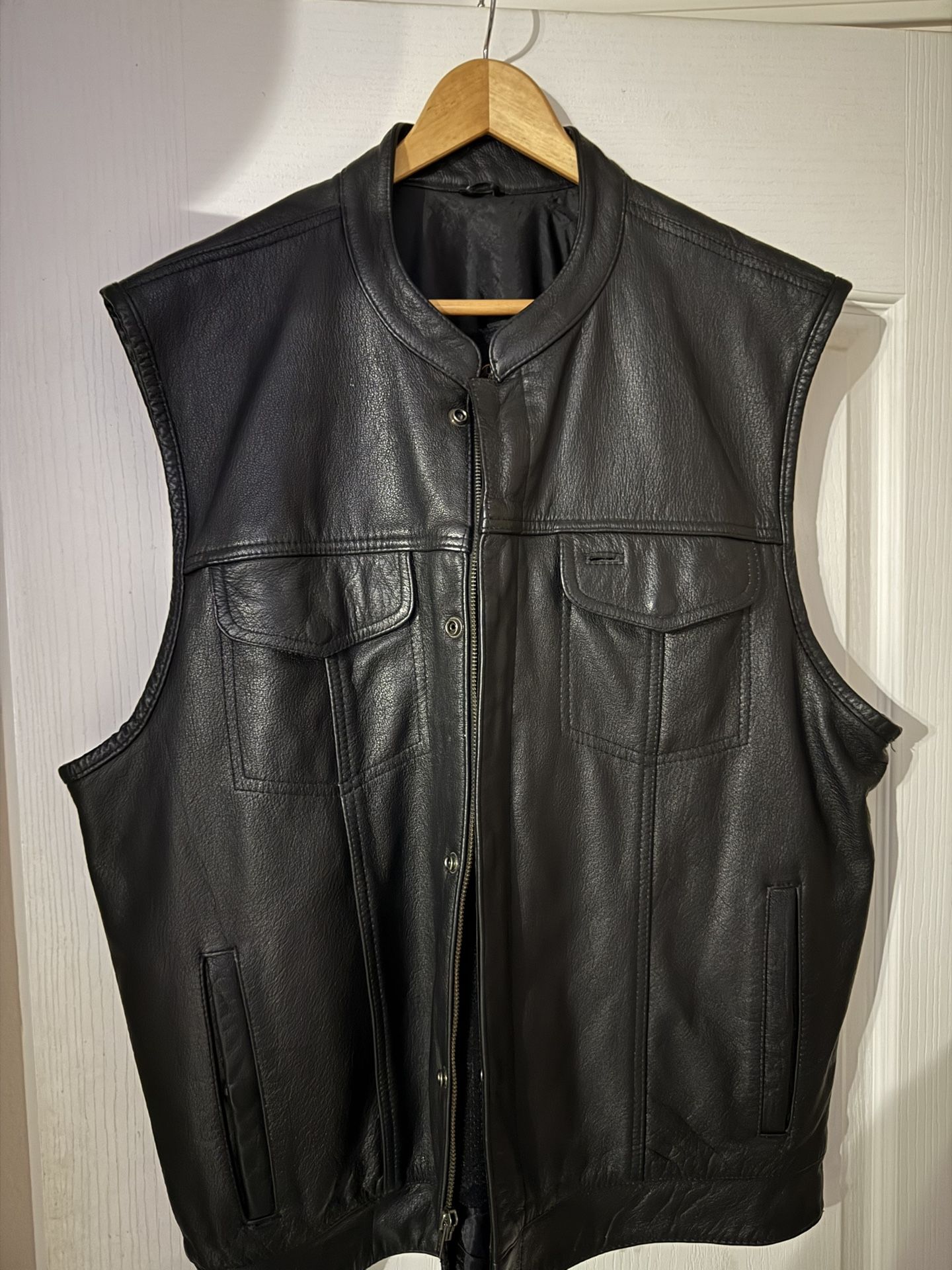 Authentic real genuine leather vest . Size XXL men’s .. Very nice and in great condition . I purchased and wore 1 time .