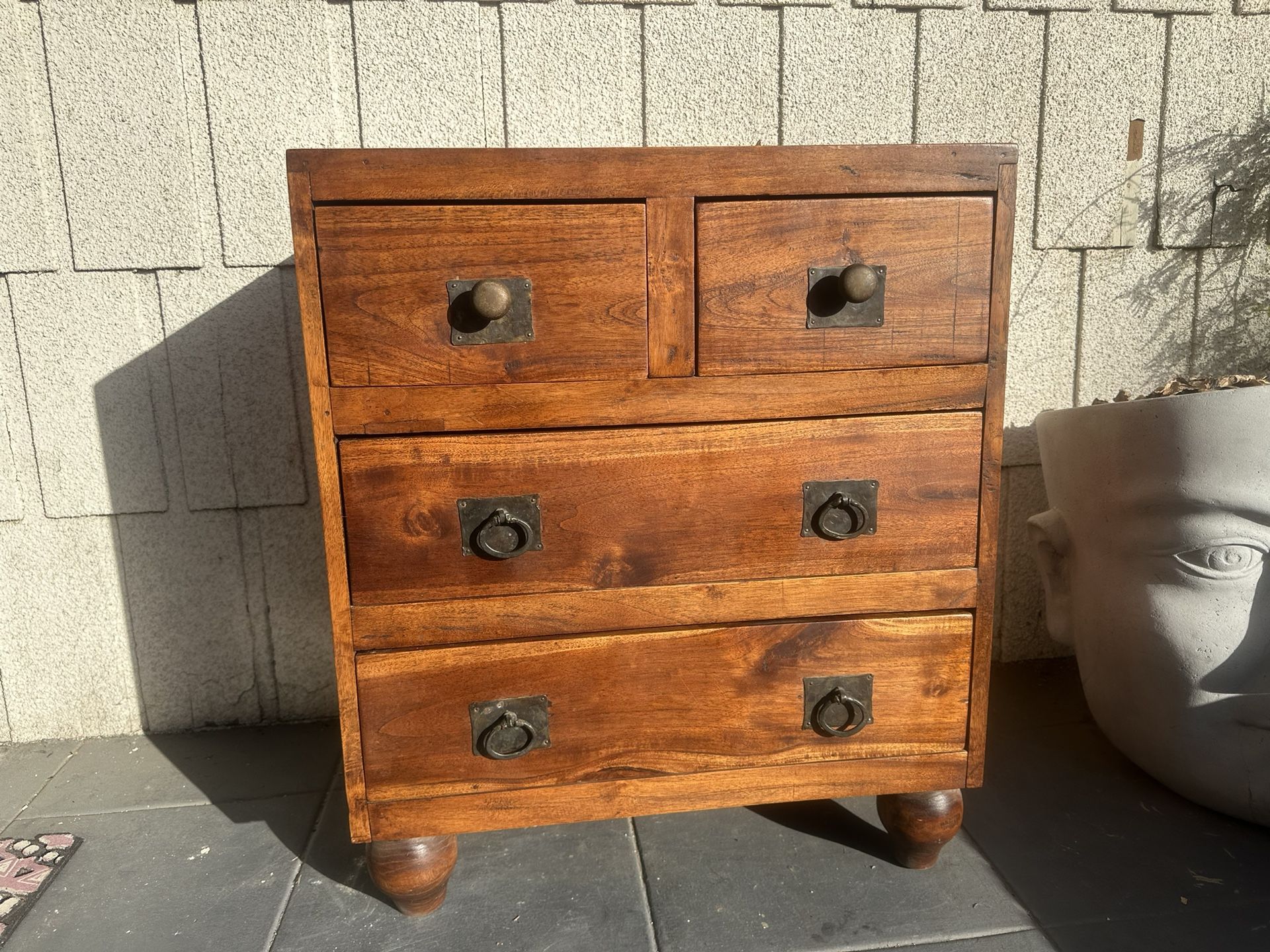 Gorgeous antique nightstand / antique end table. All drawers work well. Charming piece with plenty of character. Versatile piece that is in excellent condition. Solid wood and heavy. Turned legs are solid and sturdy. Can deliver for a fee. 27 3/4 tall 18” deep 28” wide