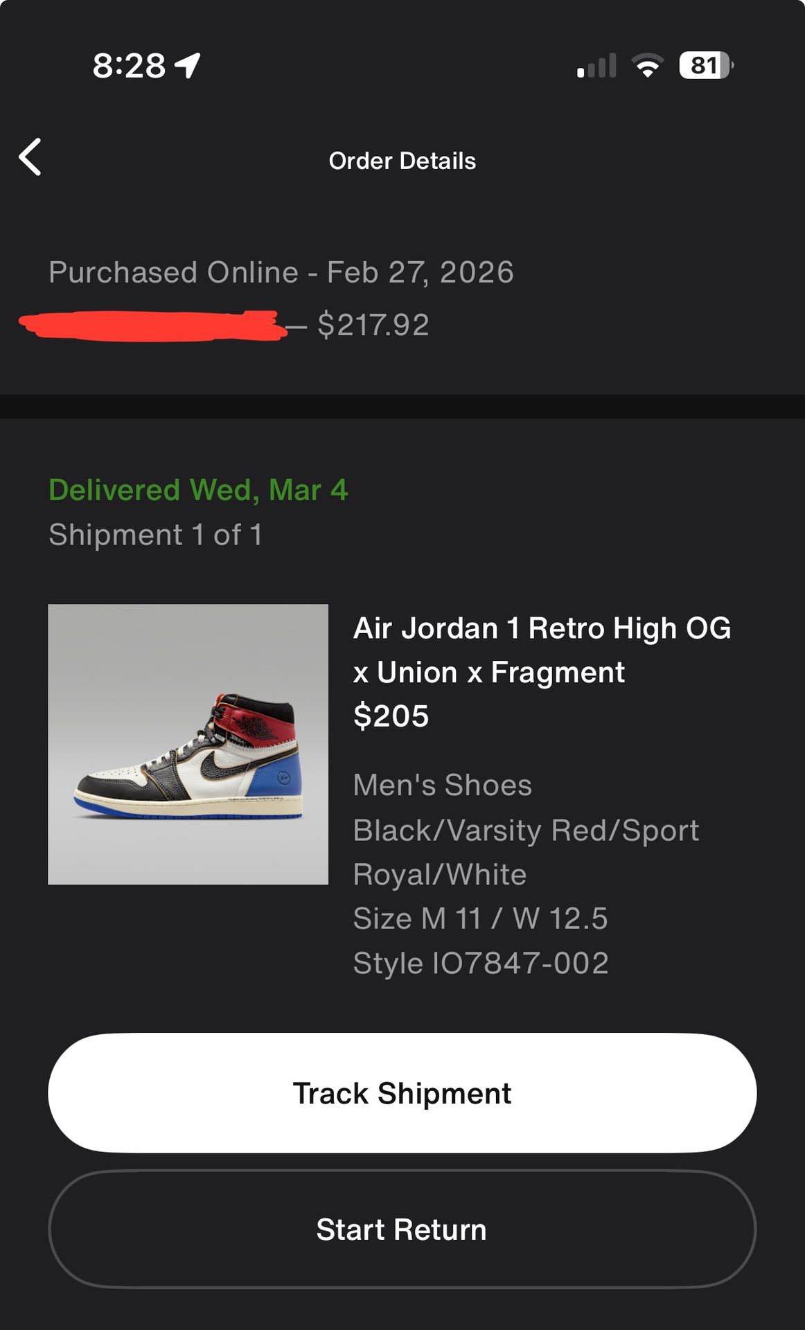 Jordan 1 Union Fragment Varsity Red Royal Size 11 Got on SNKRS In hand Message me with any questions