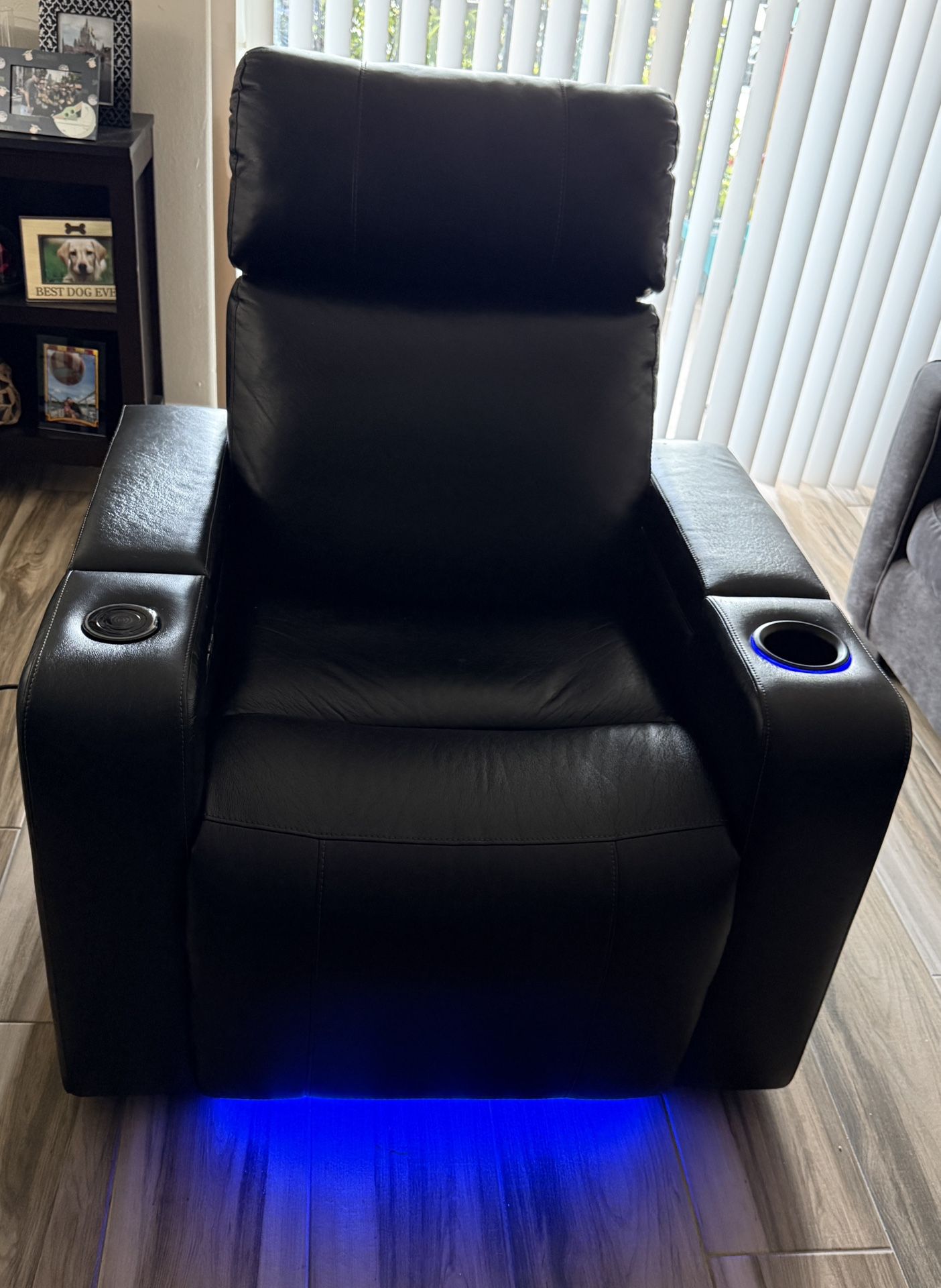 Fully Adjustable electric faux leather recliner with wireless charging and l.e.d. Lights as shown. Mint condition, purchased for my wife but she never used it and it’s taking up space and i need it gone to make space. Comes apart in 2 pieces easily. Must pick up in pembroke pines, no delivery. This is an expensive recliner but im pricing it to sell asap. No exceptions will be made, paid 699.99 before tax.