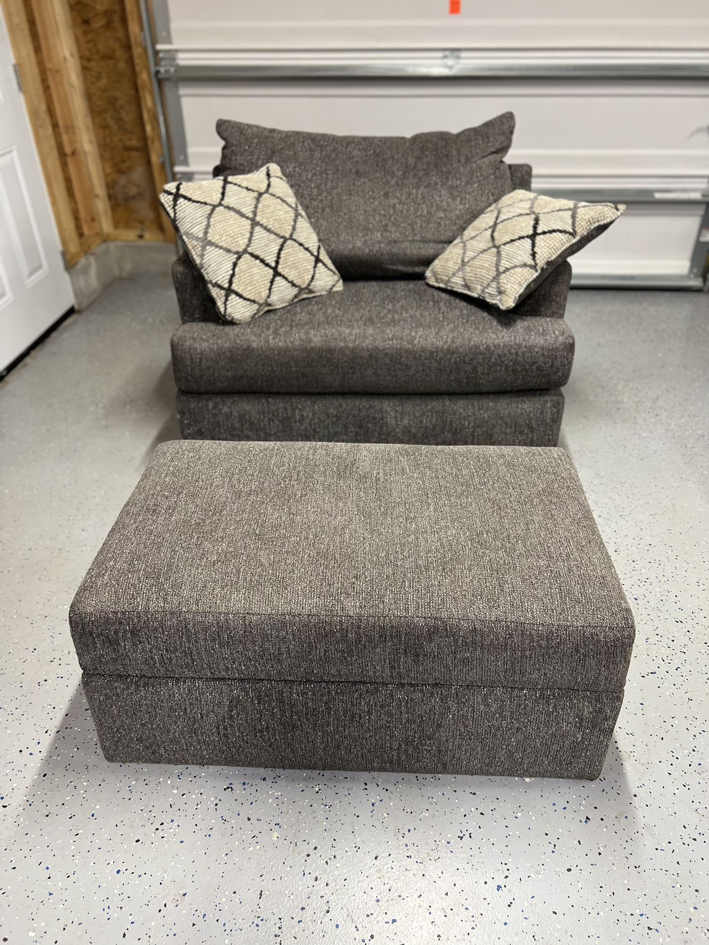 Gently used Oversized chair with Ottoman with two decorative pillows in excellent shape for only 120 Cash Only (Delivery may be available)