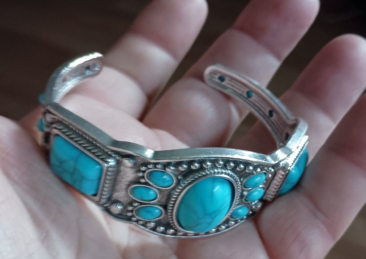 Women's Vintage Bohemian Bangle with Faux Turquoise.. opening adjustable