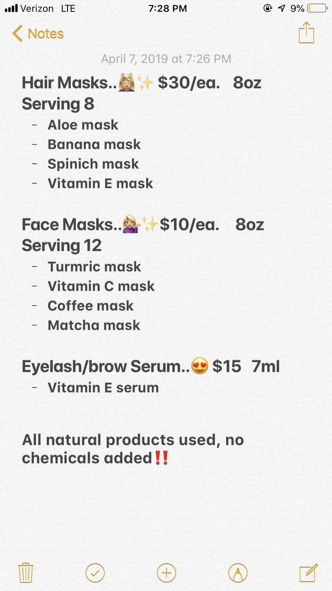 Homemade all natural masks and serum no chemicals added!! made with love to treat your hair and skin. Ask for benefits and ask which one will suit you best!❤️ shipping not included.