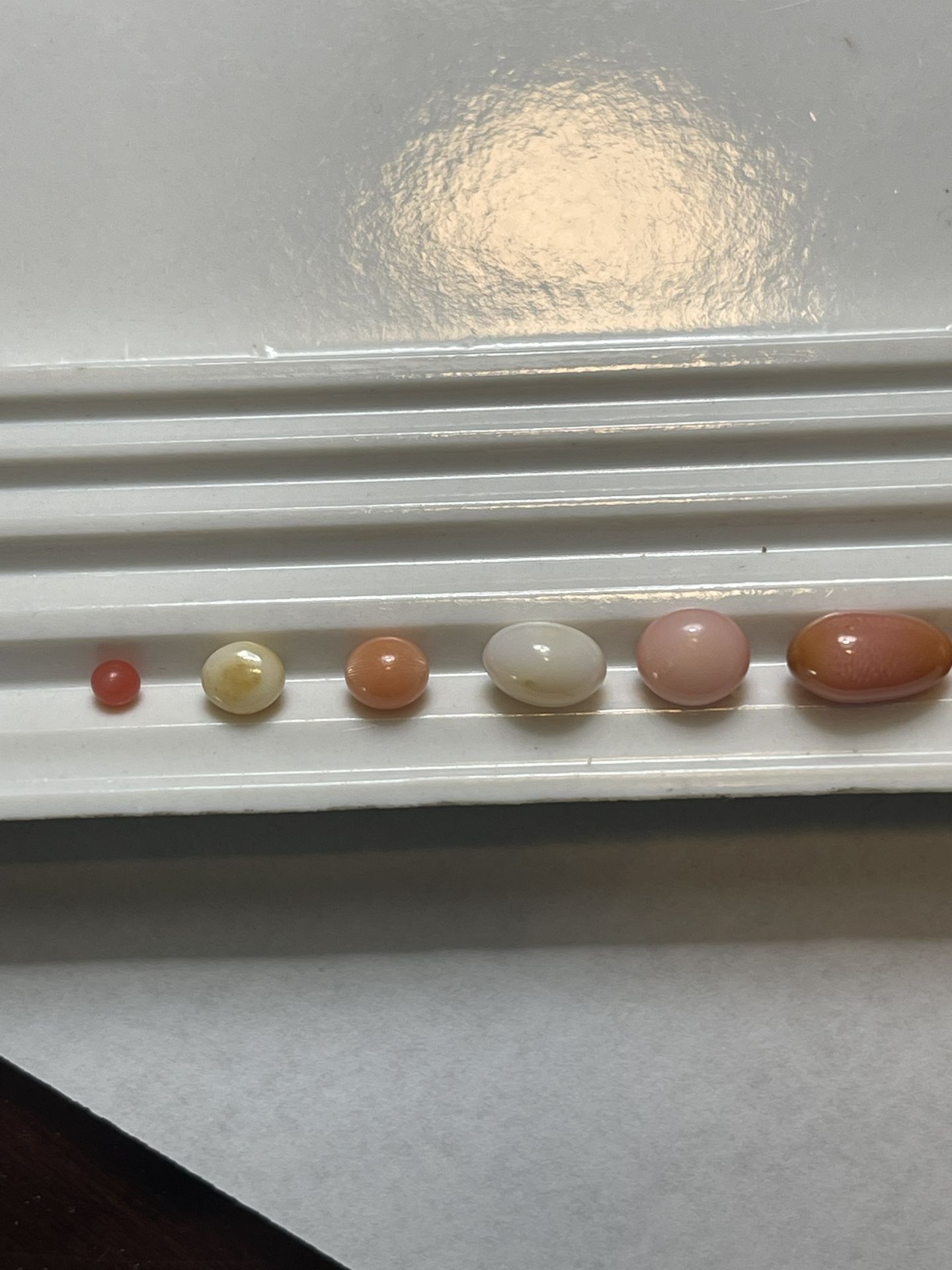 11.1 carats of jewelry grade conch pearls. Extremely rare and valuable gems. Excellent shape, colors and surfaces. Several have strong flame pattern. 2 already drilled for jewelry setting (see photos). Collected over 15 year period with plans to set into high-end jewelry but now retiring.