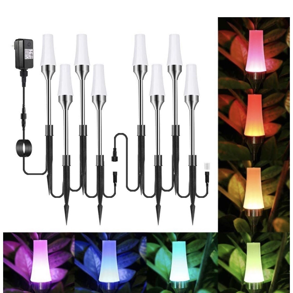 8 Pack Color Changing RGB Landscape Lights, Connectable Pathway Lights Outdoor, Waterproof Outdoor Garden Path Yard Lawn Lights (7 Colors Keep Changing, 480lm)