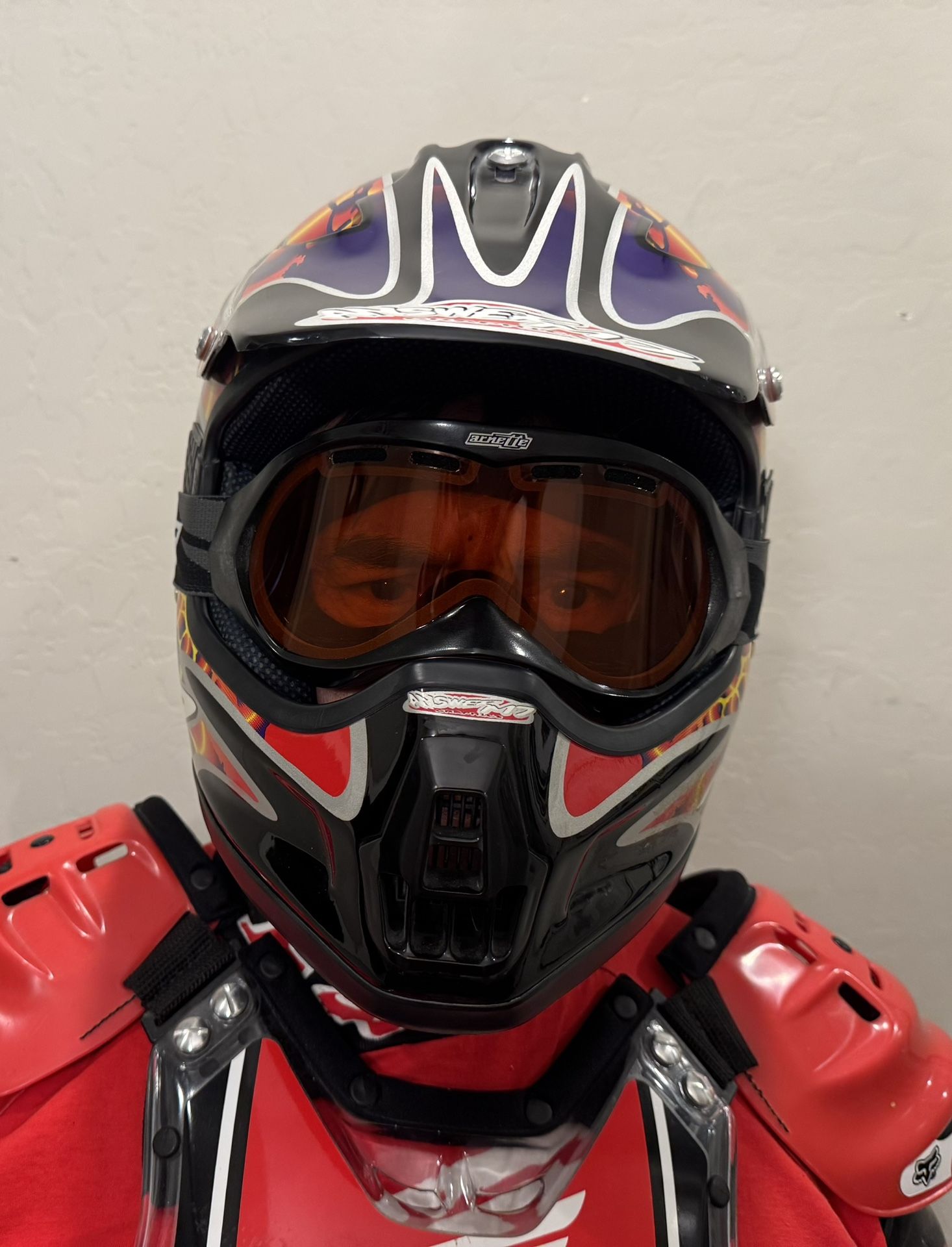 Size: Large Serial No. JM 684954. Answer M7 graphics certified motorcycle helmet