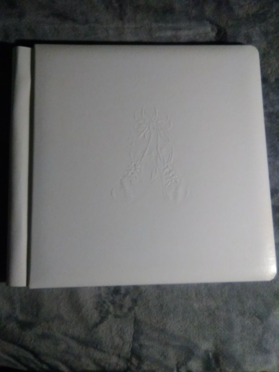 12x12 (old size) white coverset with embossed baby booties. No pages