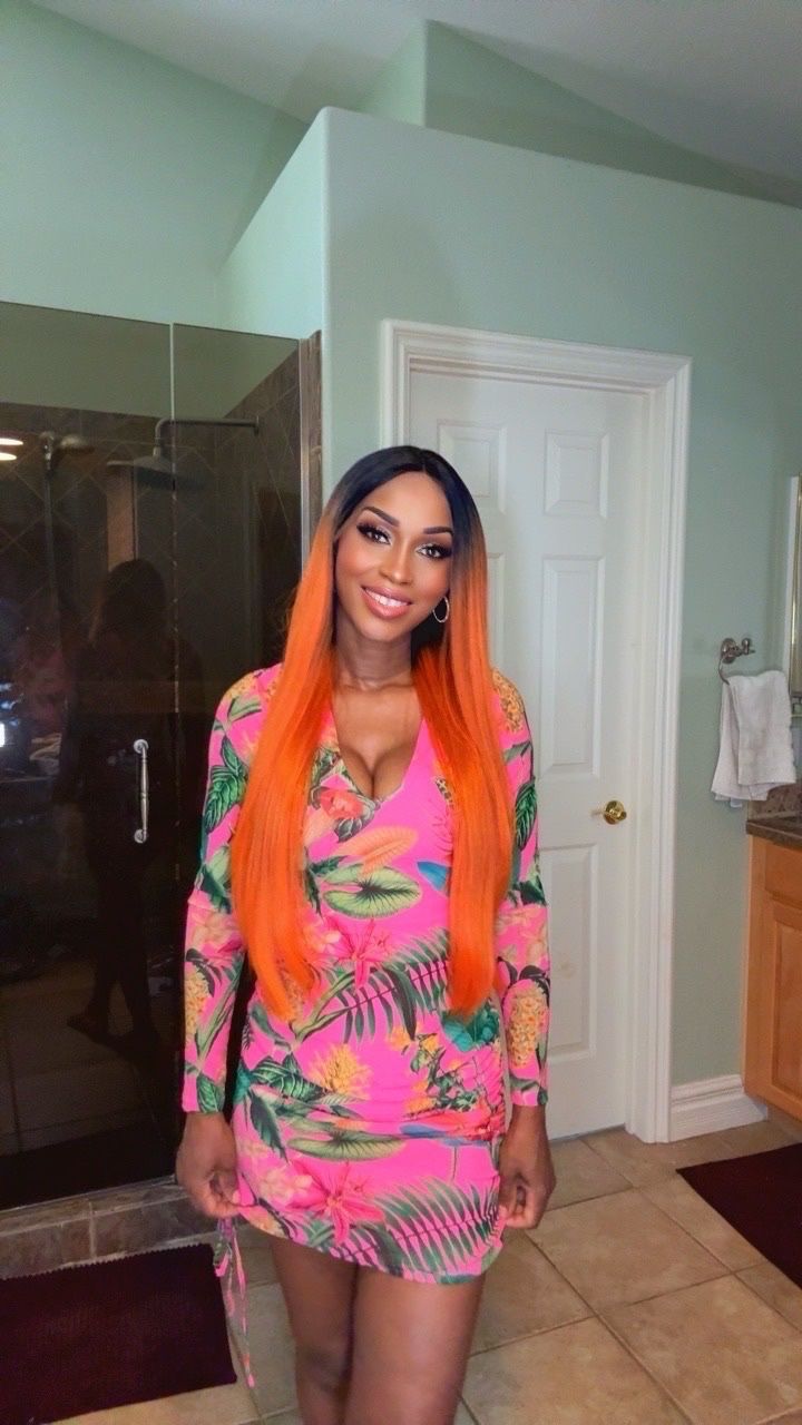 Ombre Orange Wig Lace Front Straight Hair Premium Quality Synthetic Hair Heat Ok