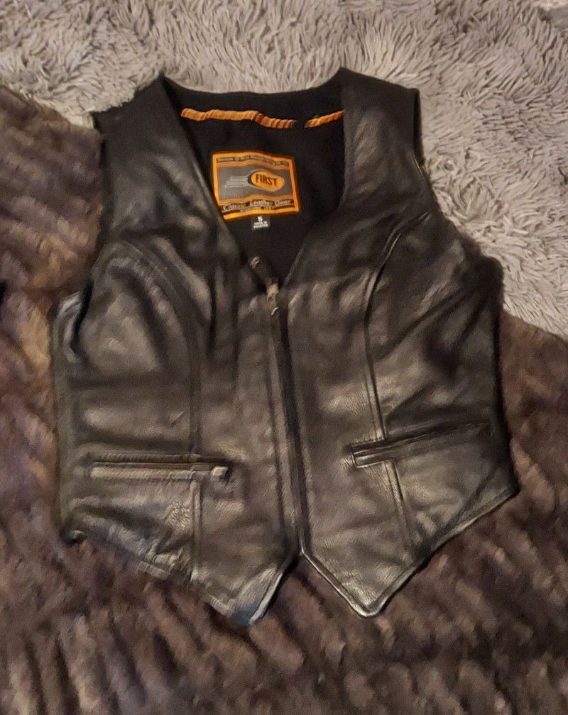 Ladies Leather Motorcycle Riding Vest-Sz Small