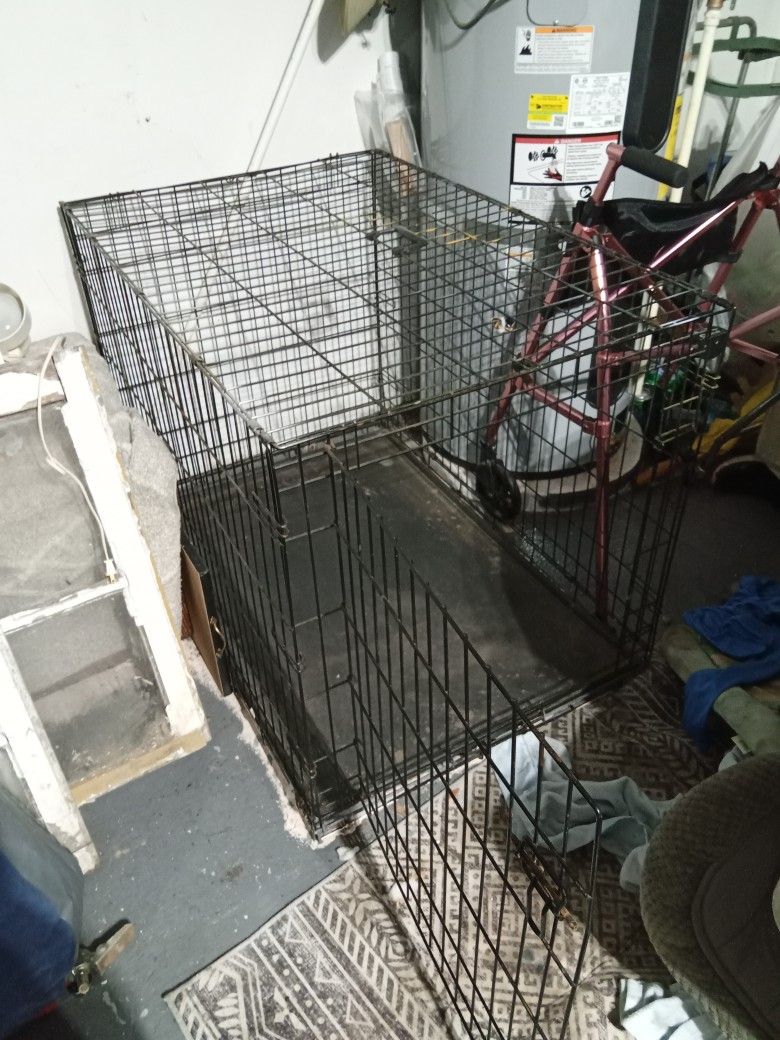 42 1/2 x 27 1/2 inches. Perfect size for pit or medium-large size dog. We had it in our garage for the dog to lay down in if he was outside, it has latches that if you unhook it will collapse down,to make it easy to travel with. We got a new one, don't need this one anymore price is obo