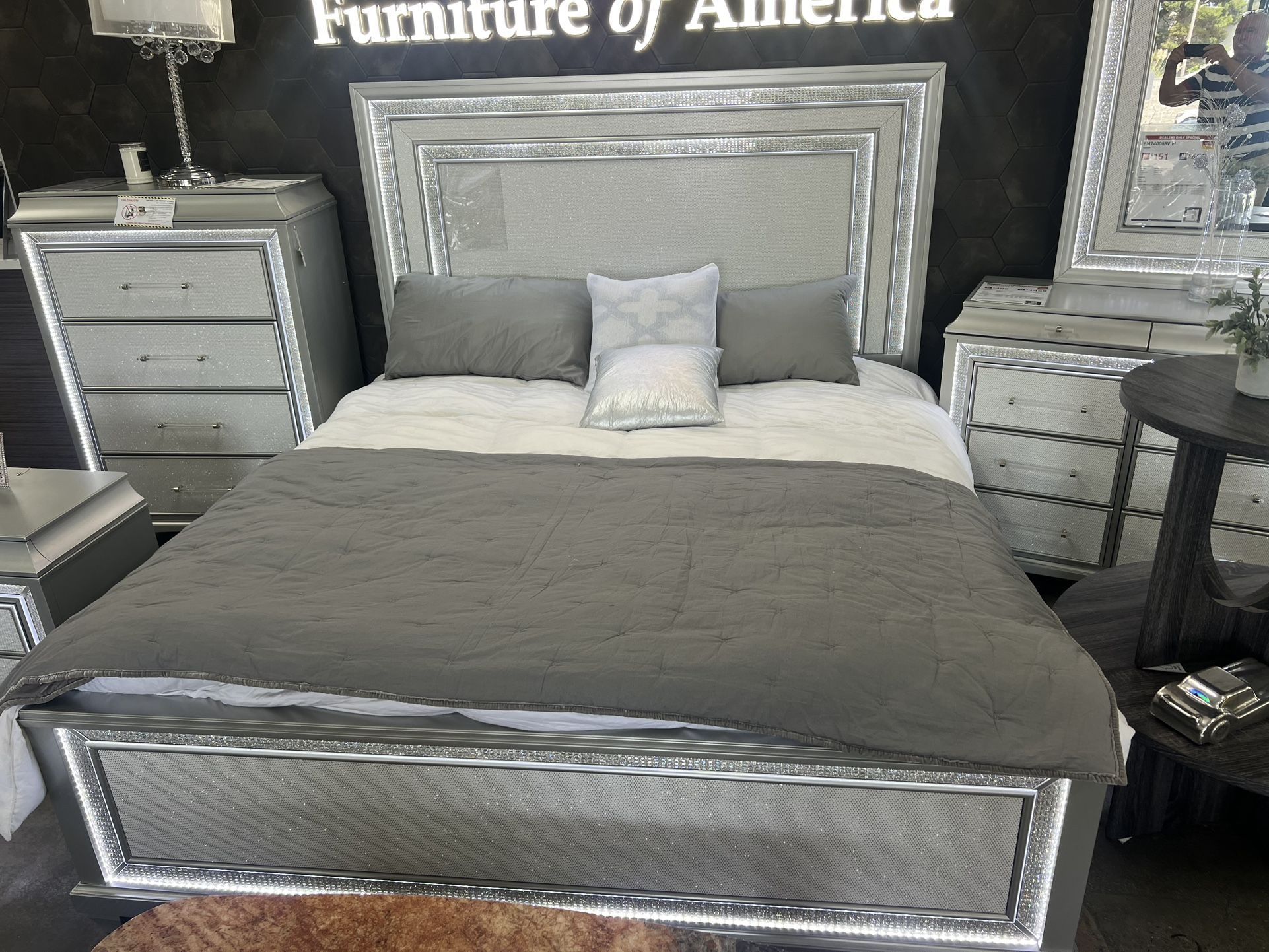 New Elegant Grey Crystal Trim Bed With LED Lights. Free Delivery!