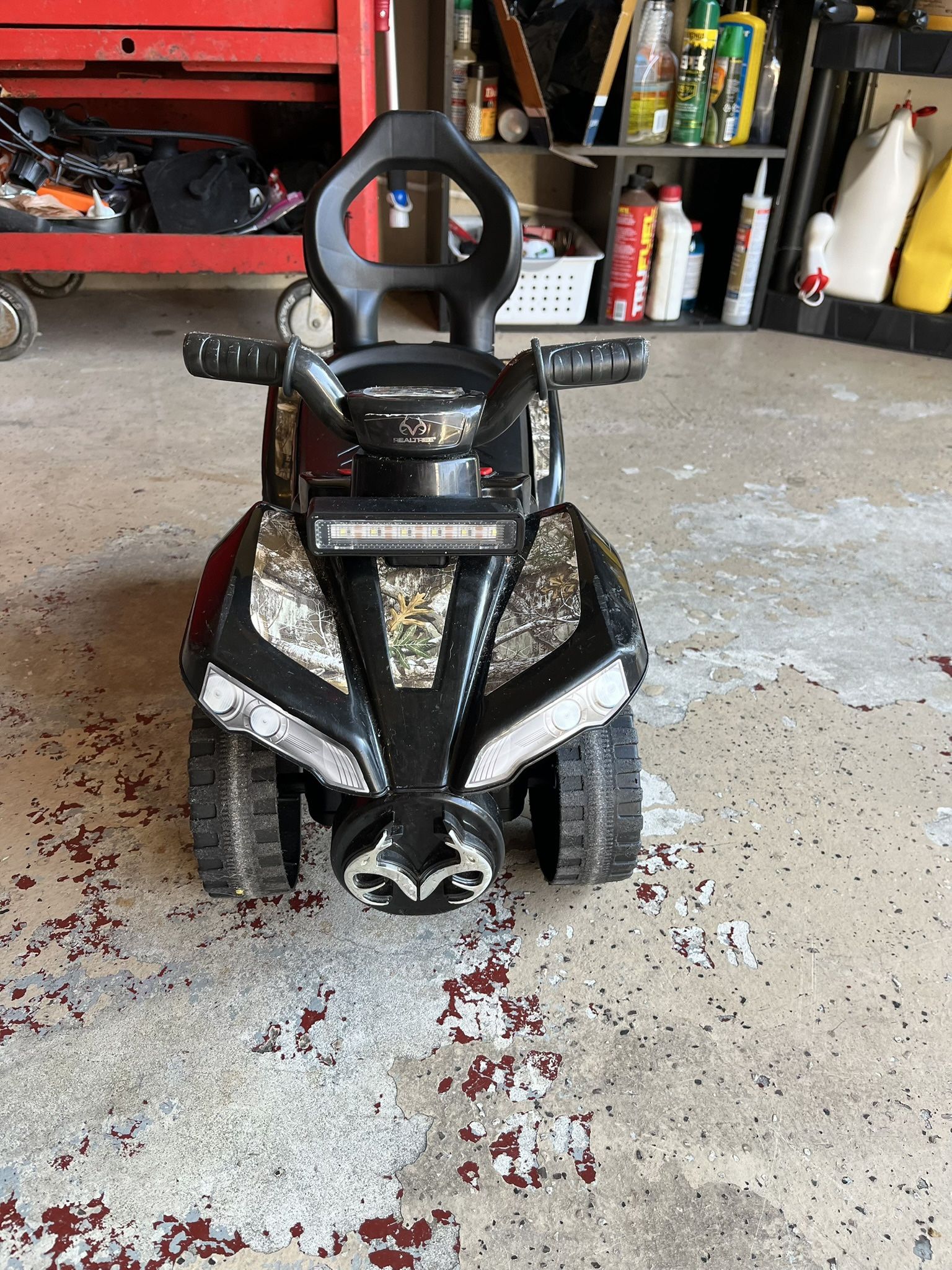Works great Makes noise Lights up The seat opens and has pretty good space to hold toys