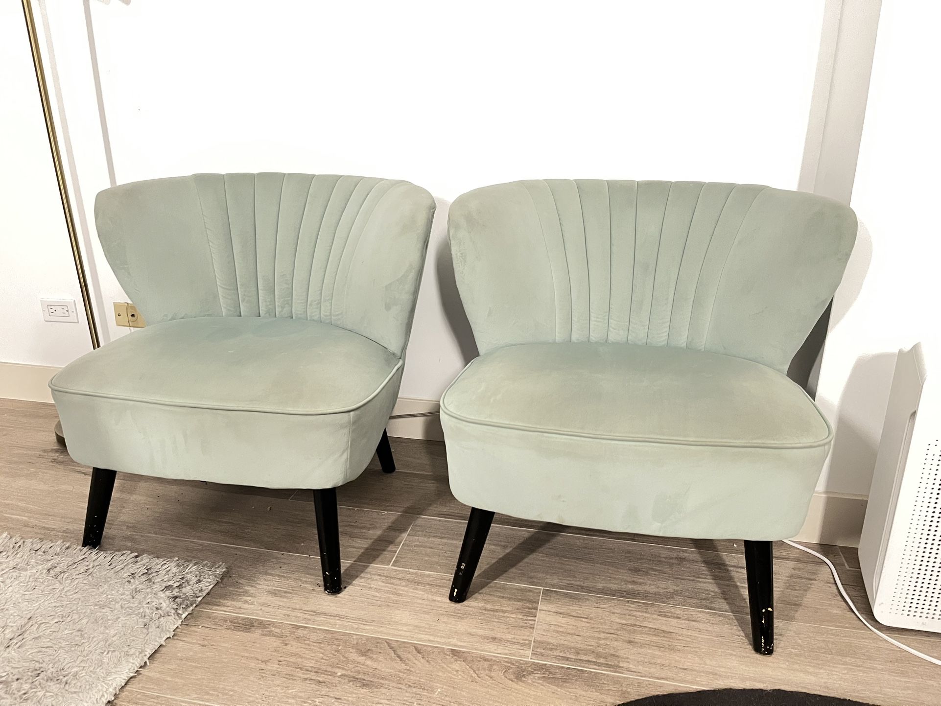 In good condition. Most wear is on the legs from handling. No pet/no smoke home. No tears. *They are low seating chairs. They offer plenty support for da booty and back. However, not the best choice for taller folk. Asking $80 for the pair. Must pick up in Century City.