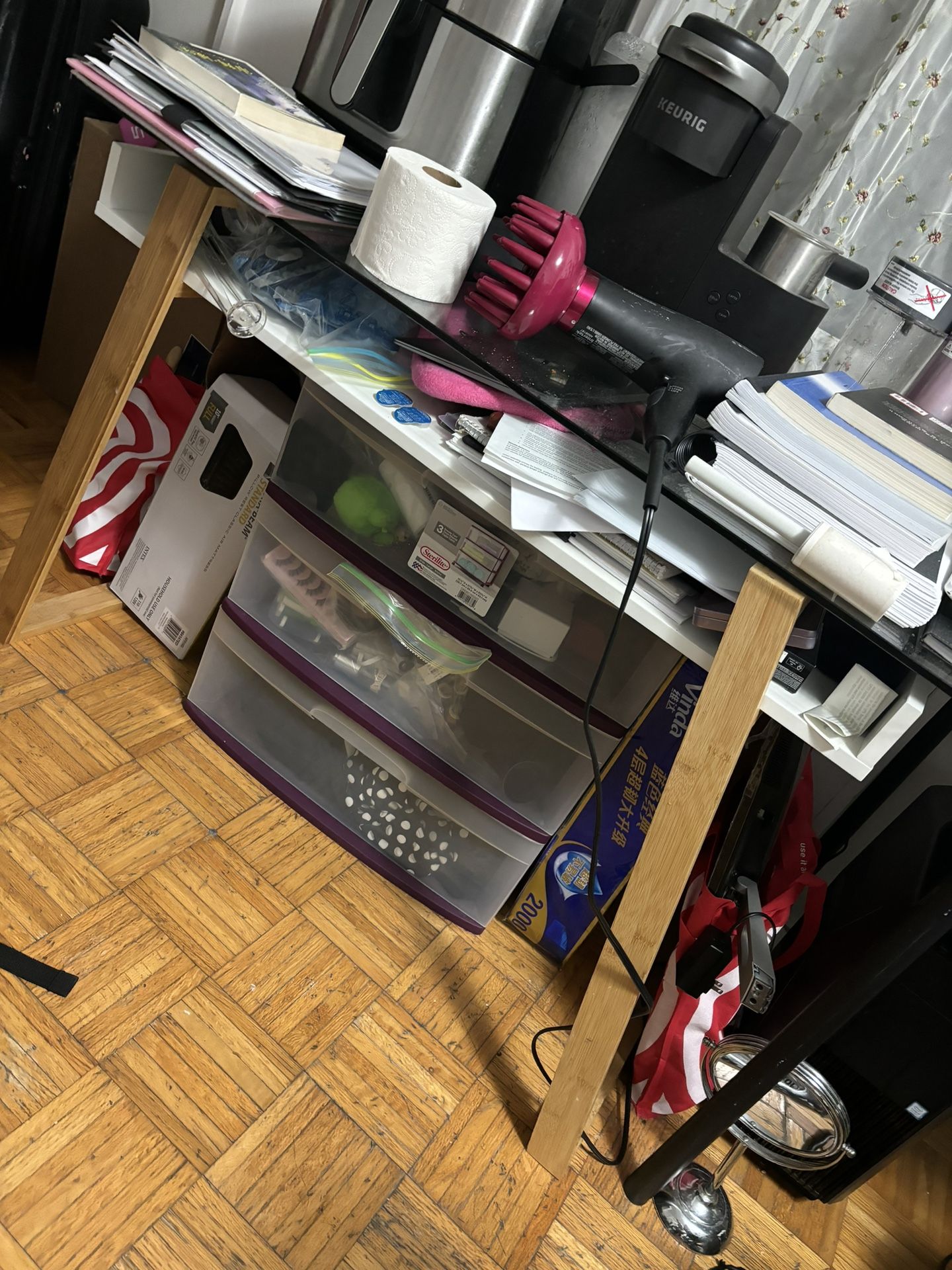 Like new. Can hold a lot of stuff. Messy because of moving.