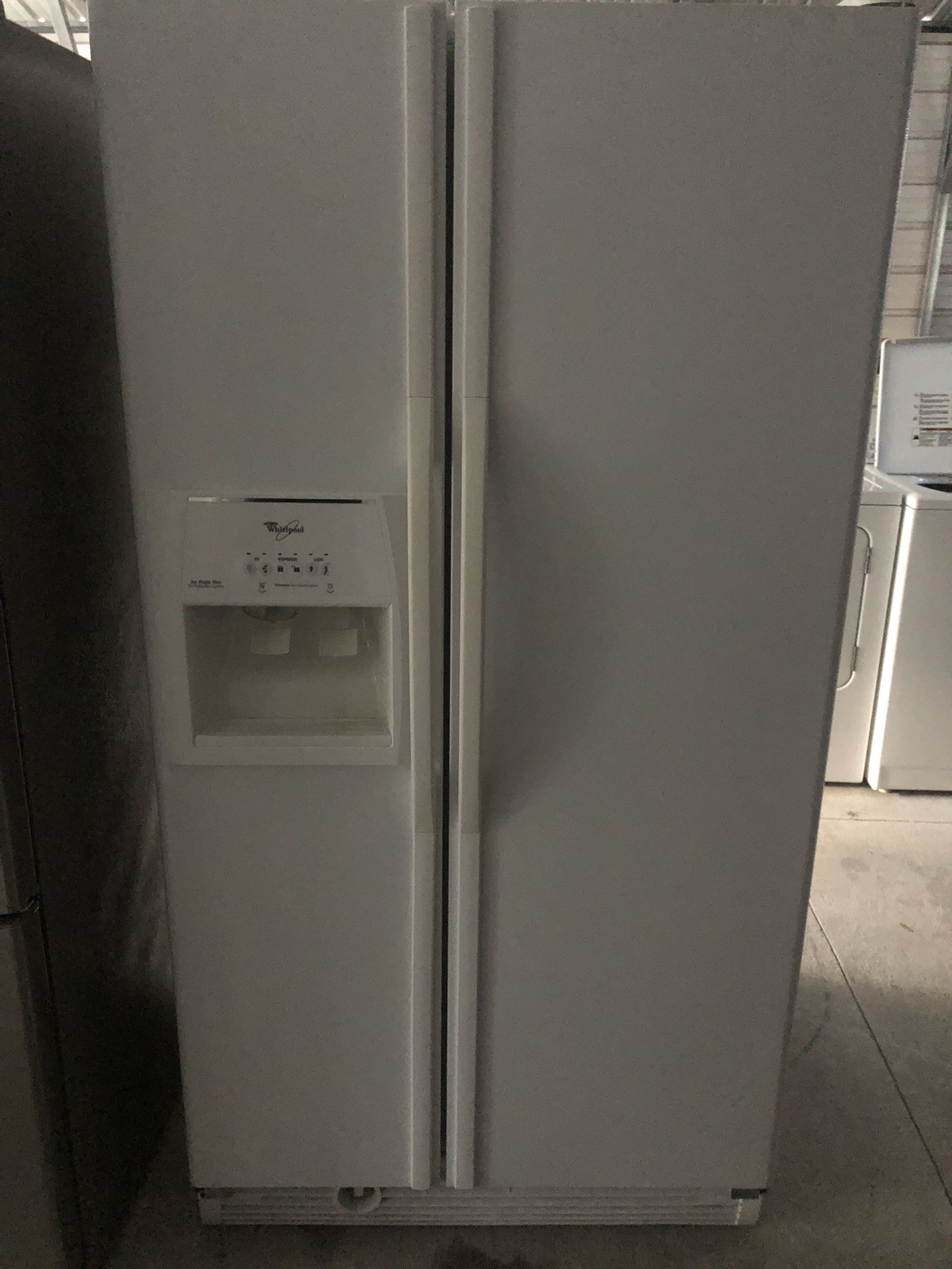 Whirlpool White Side By Side Fridge Works great Clean Ice Water Filter 36 Inches Wide 29 Inches deep 68 Inches Tall Selling for $450 Delivery $95