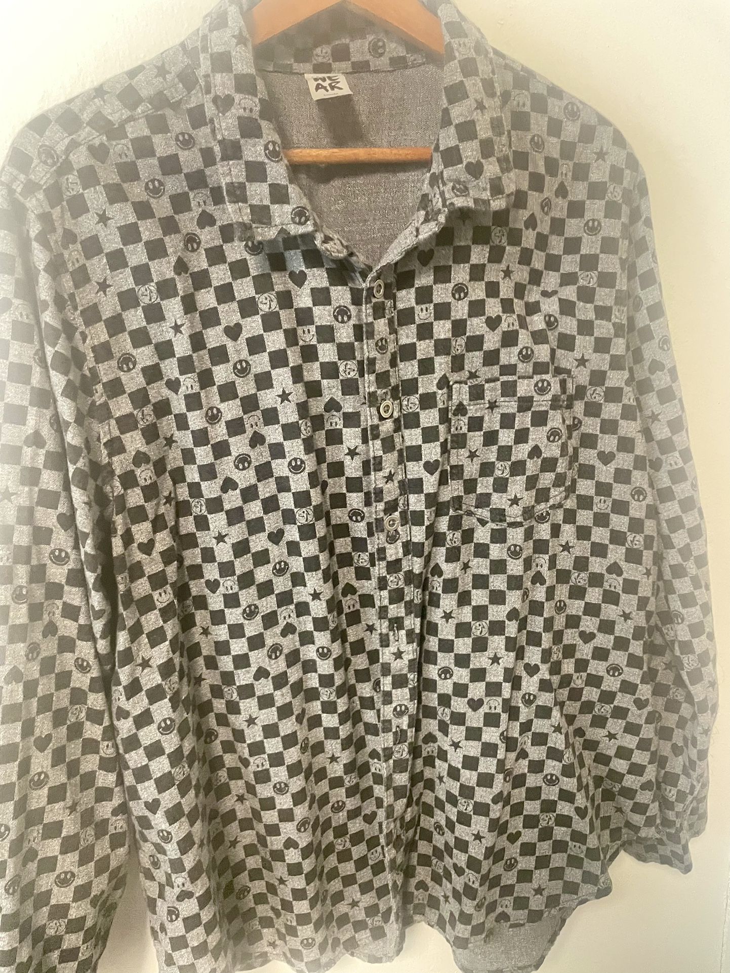 Hi everyone. I’m finally loading Zumba clothing! Size: Lovely (fits like a unisex Medium) Condition: Brand New, Never Worn Color: Black & Silver Checkerboard Material: Lightweight & breathable Step into bold energy with this rare Zumba® long sleeve statement piece! Covered in a checkerboard of hearts, stars, the famous company logo, and smileys, this unique shirt features the metallic quote: LIVE BOLD. DANCE BOLD. on the back — made to move with you and catch the light. 🔹 Button-up front 🔹 Left chest pocket 🔹 Premium Zumba WEAR label 🔹 Great for dance, fashion, or layering ✨ Originally part of an exclusive ZWear drop (I worked directly with the co-founder of Zumba Fitness, so this is authentic and rare). 💰 Asking: $38 📦 First Come First Serve- Rockledge, Viera, Melbourne areas (can meet) 💬 DM me for bundle deals or local pickup #ZumbaWear #ZumbaFitness #Dancewear #StreetwearStyle #LiveBoldDanceBold #FacelessSeller #ZumbaClothing