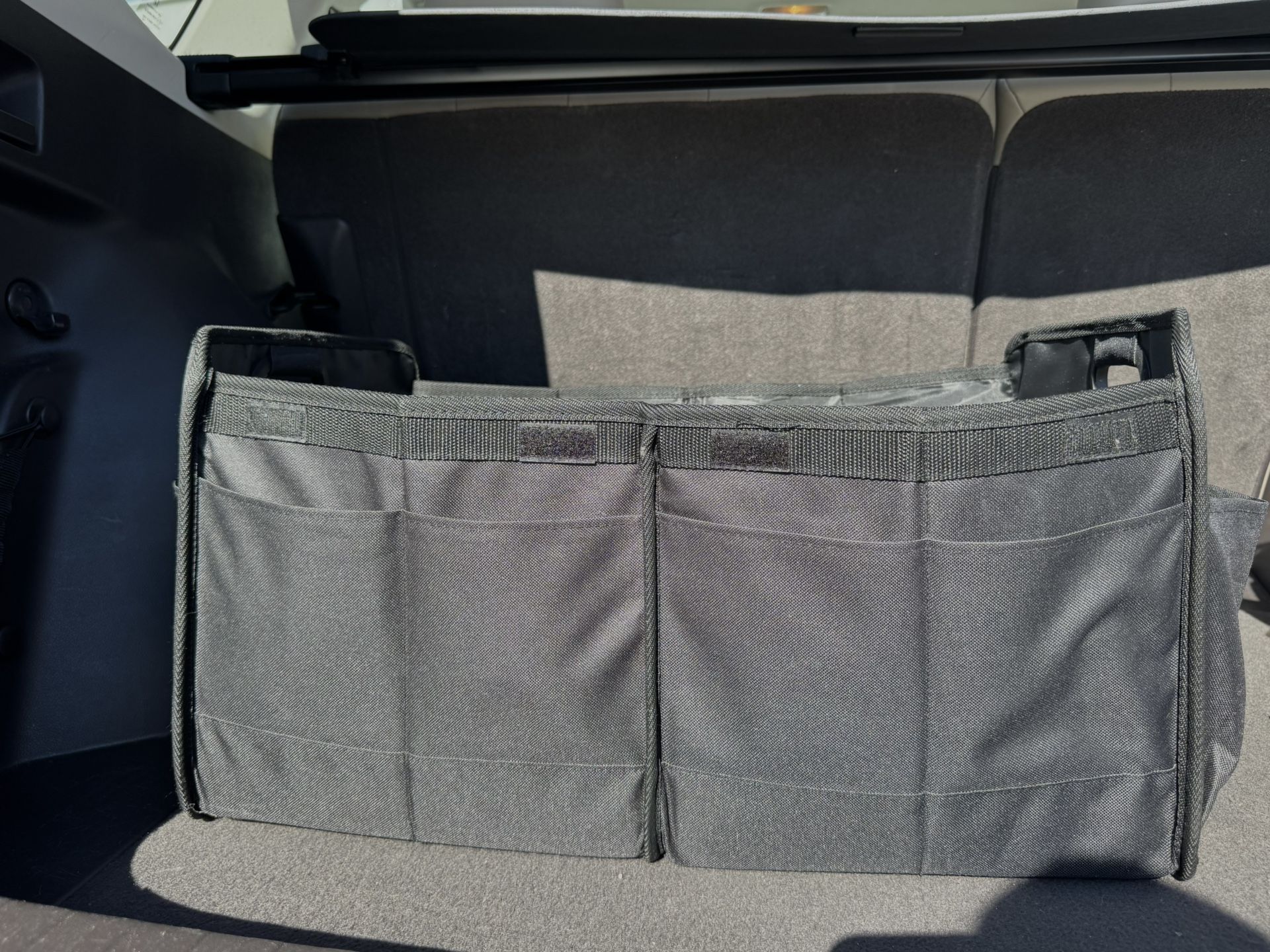 Color: Black Great condition! Pockets on all sides, comes with a detachable diver in one of the storage units, self adhesive on the bottom to prevent sliding in the trunk!