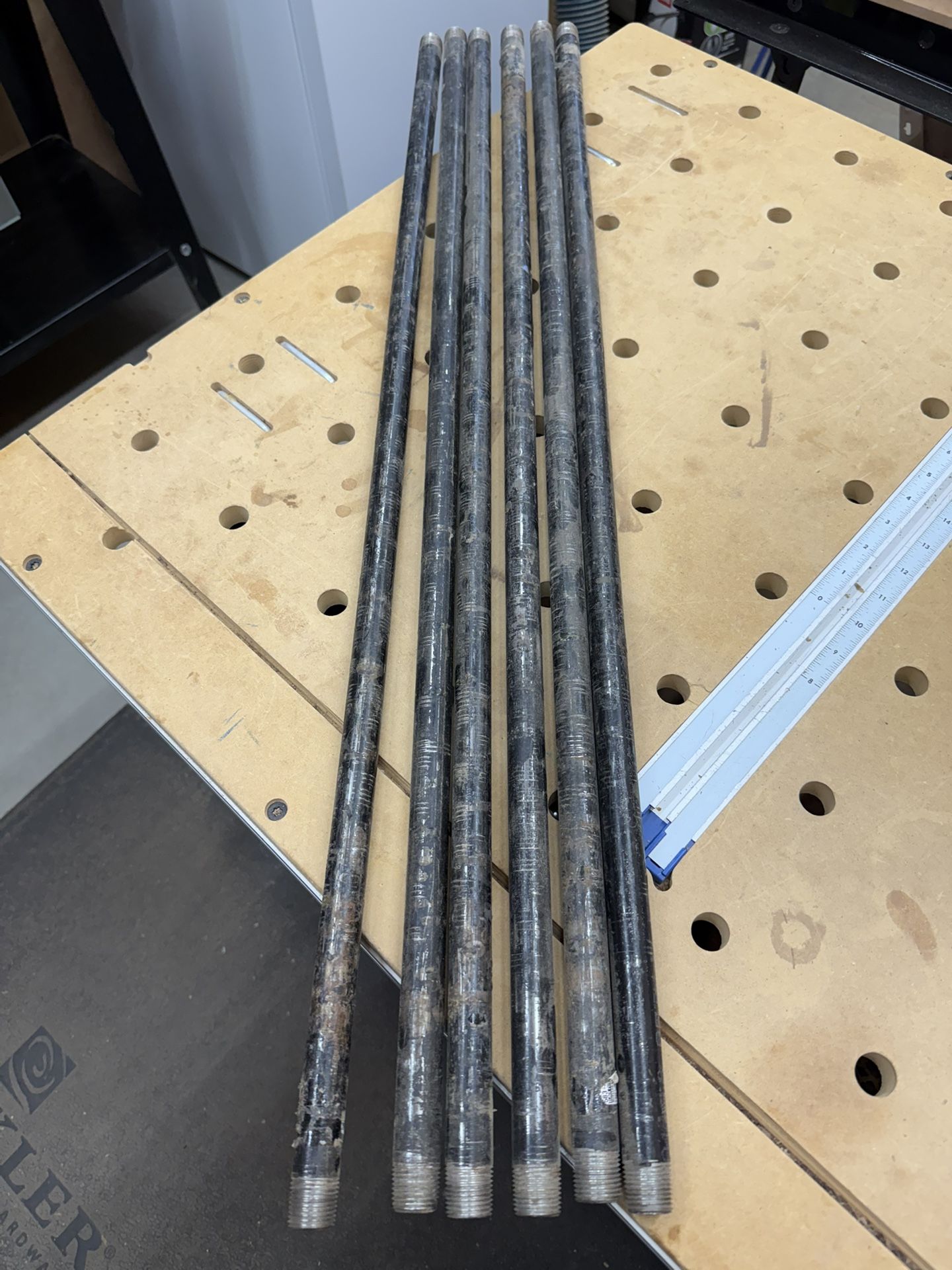 I have six pieces of 3/4” black steel pipe. Each pipe is 36” in length. They were used for woodworking pipe clamps Selling for $10 each. Can sell them separately or all at once
