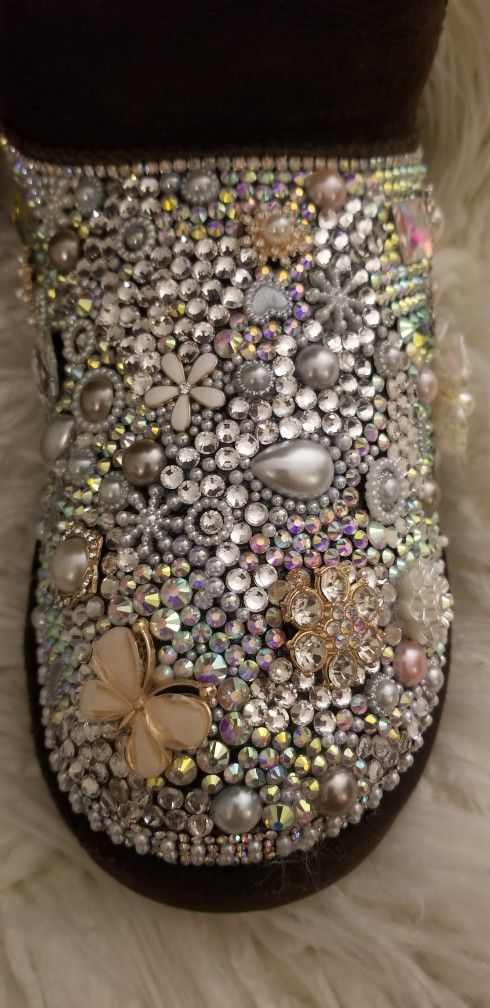 Womens Customized embellished brown Ugg boots with multi color Pearl's and crystals, normal wear ,good condition